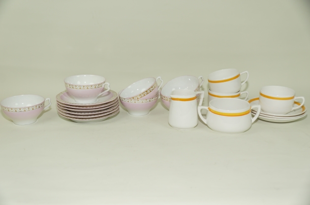 4. 2 kaffeserviser 9 koppar 9 fat sockerskål och gräddkanna Bavaria & Gustavsberg