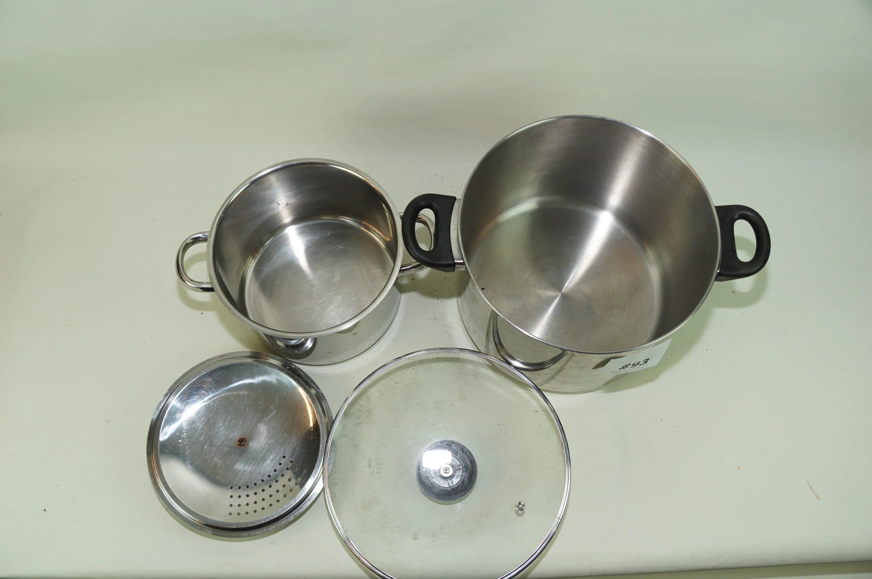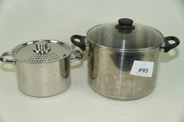 93. 2 kastruller rostfritt med lock