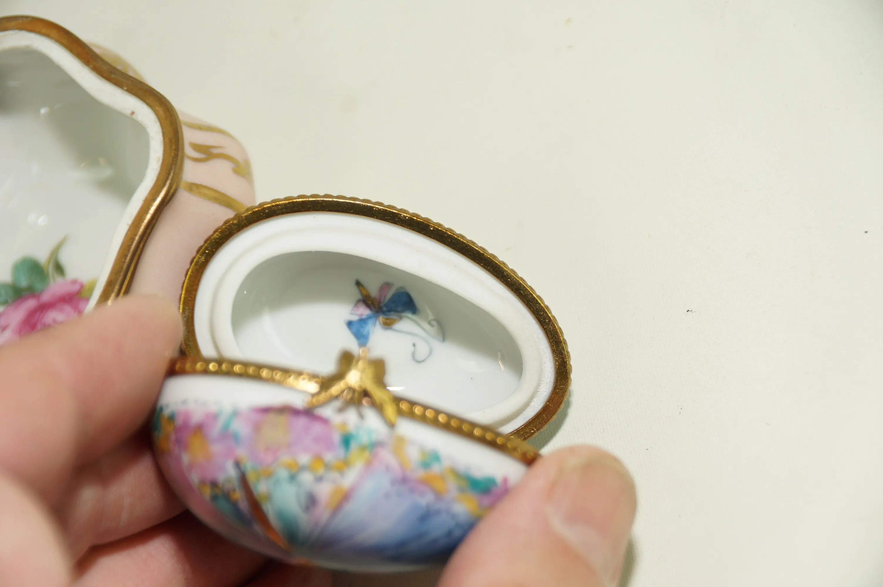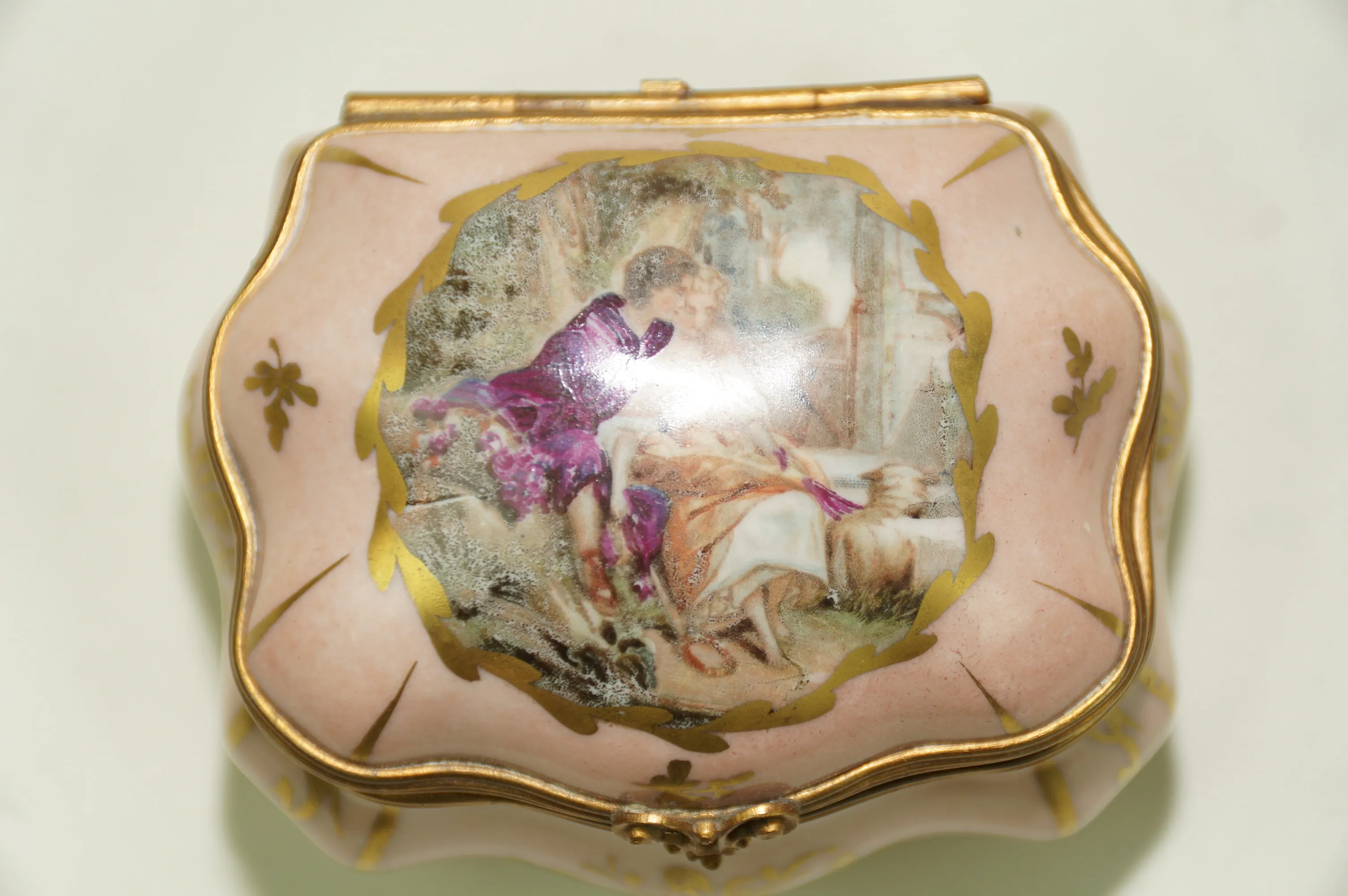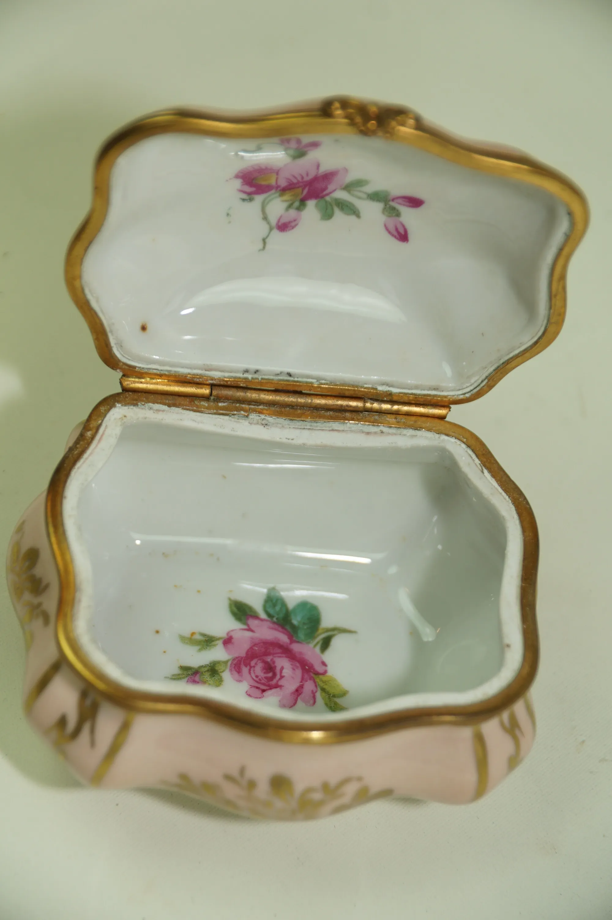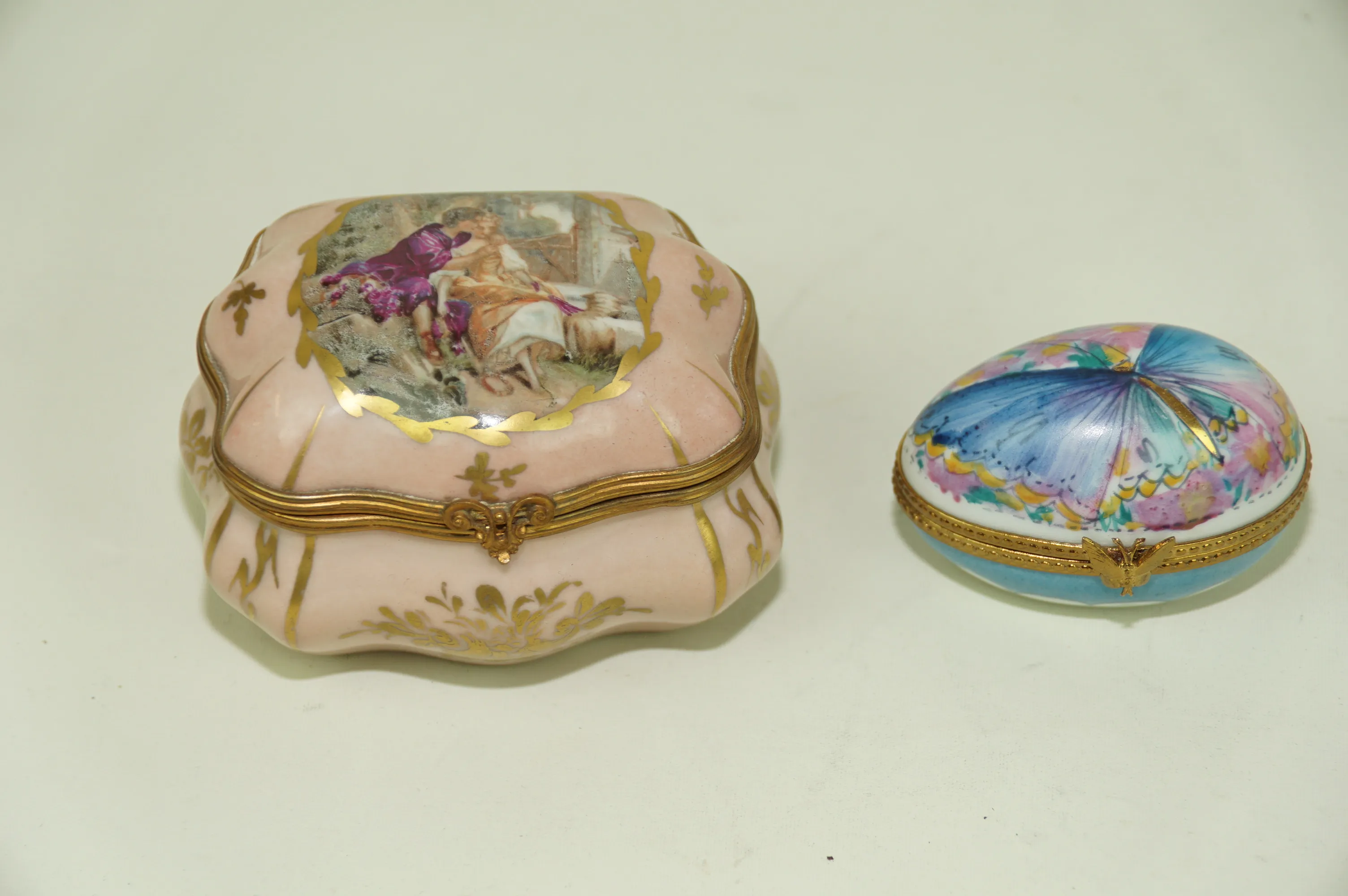 257. 2 Nipperaskar dosor i porslin och mässing Målade 1900-tal Rokokostil