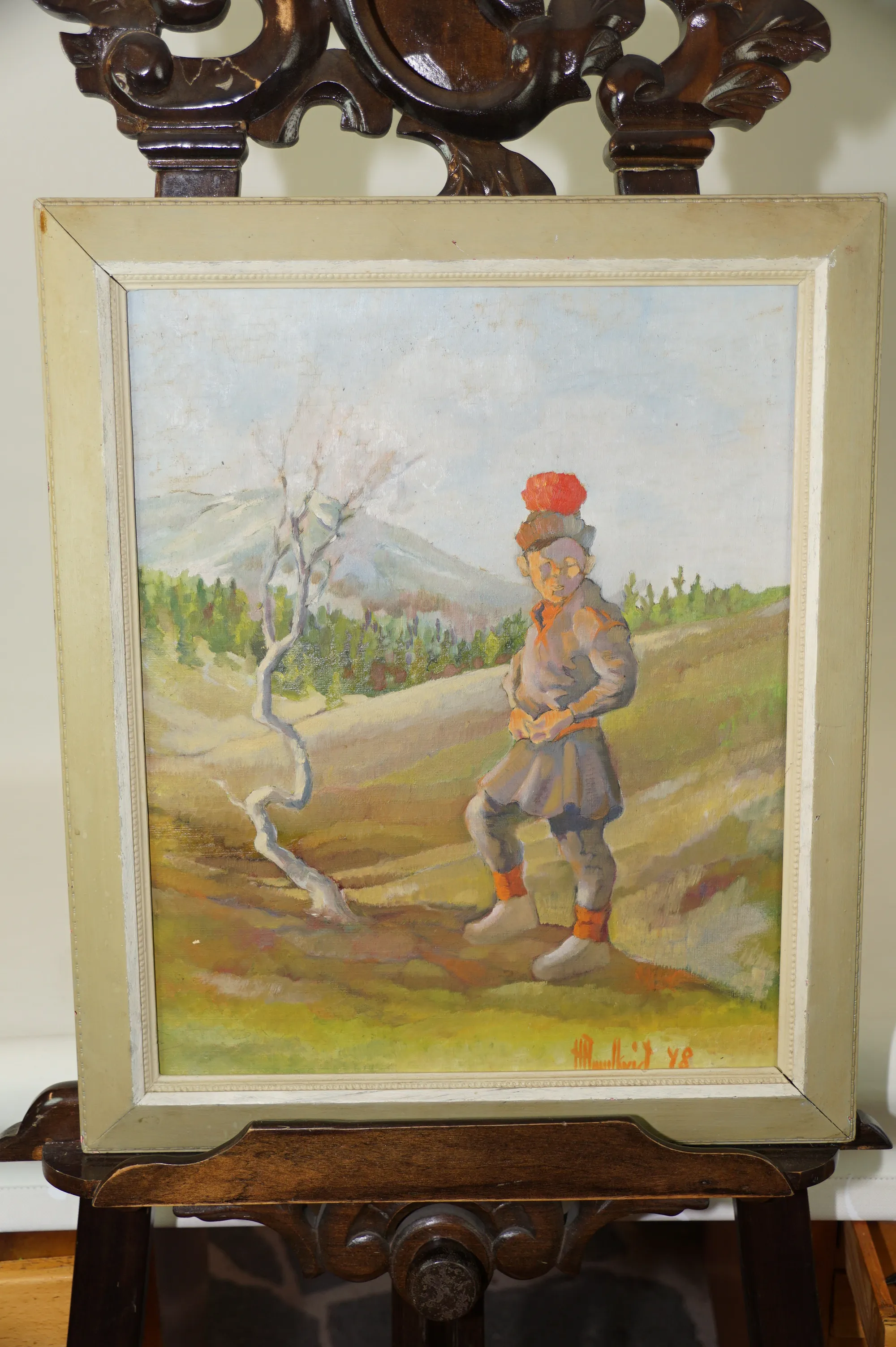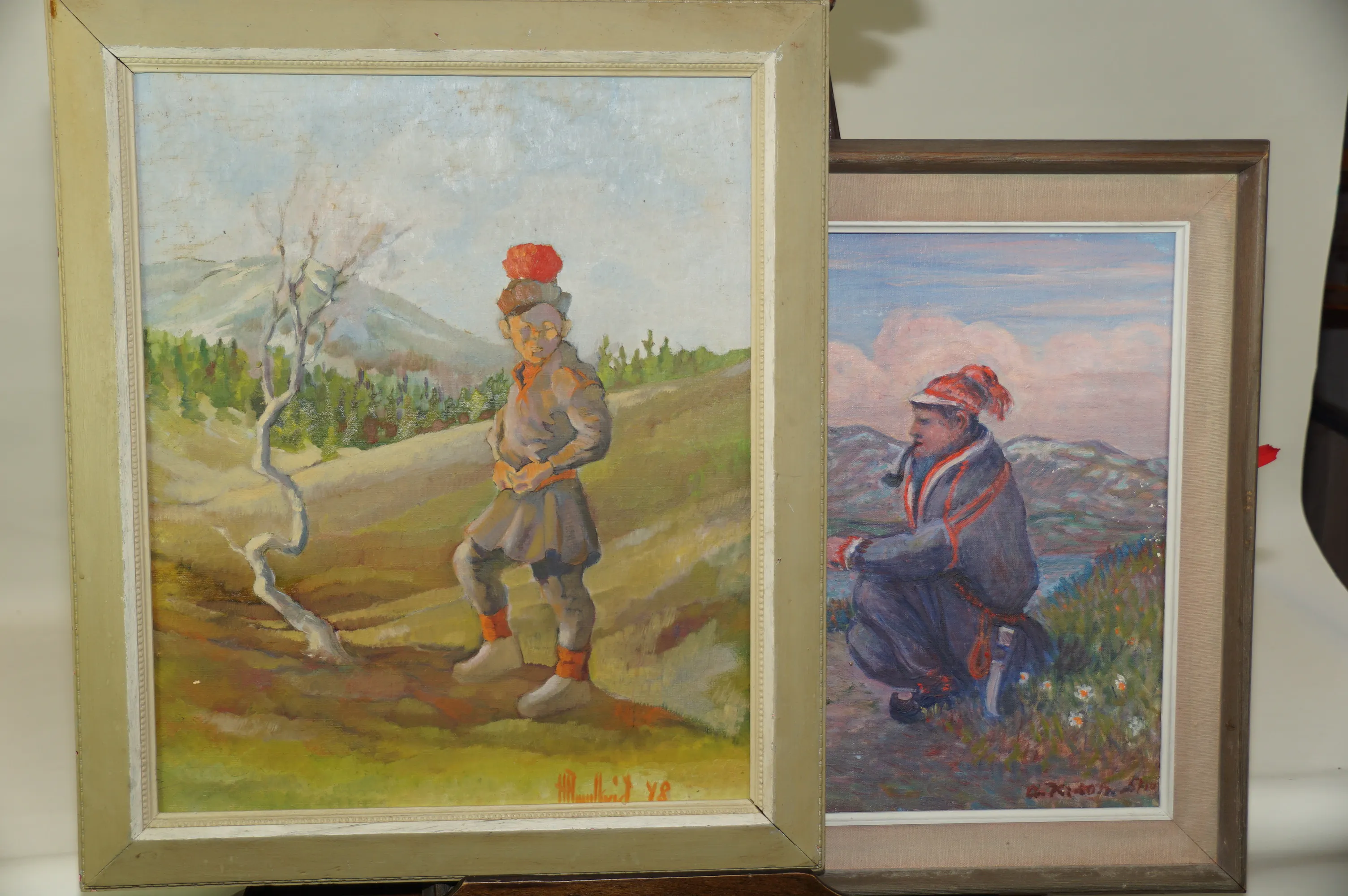 243. 2 st Olja på pannå Samemotiv Okänd konstnär