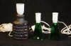 8. 2 st retro lampfötter i glas och en lampfot i keramik