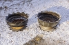 61. 2 större ute blomkrukor gjorda av bildäck och fälg