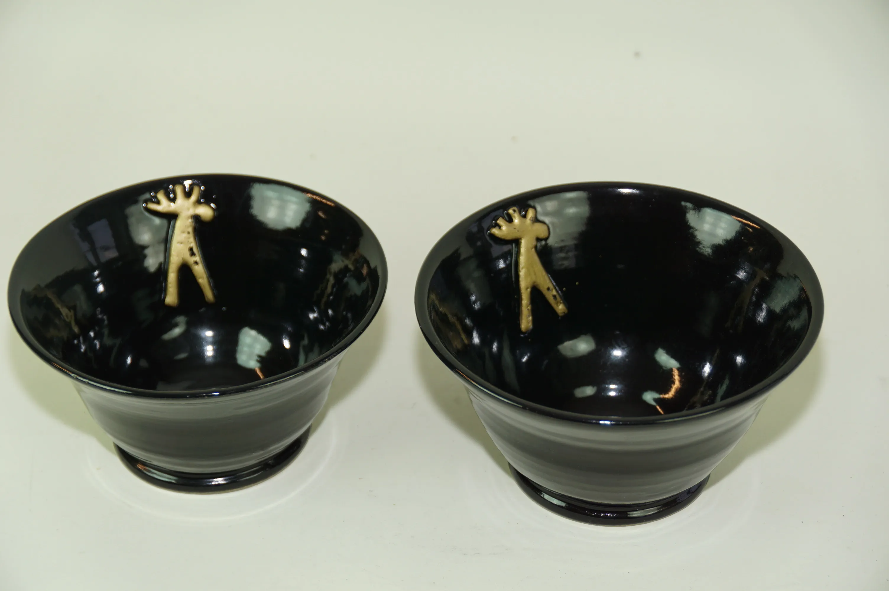 215. 2 Svarta Godisskålar med en älg av Måna Bågling