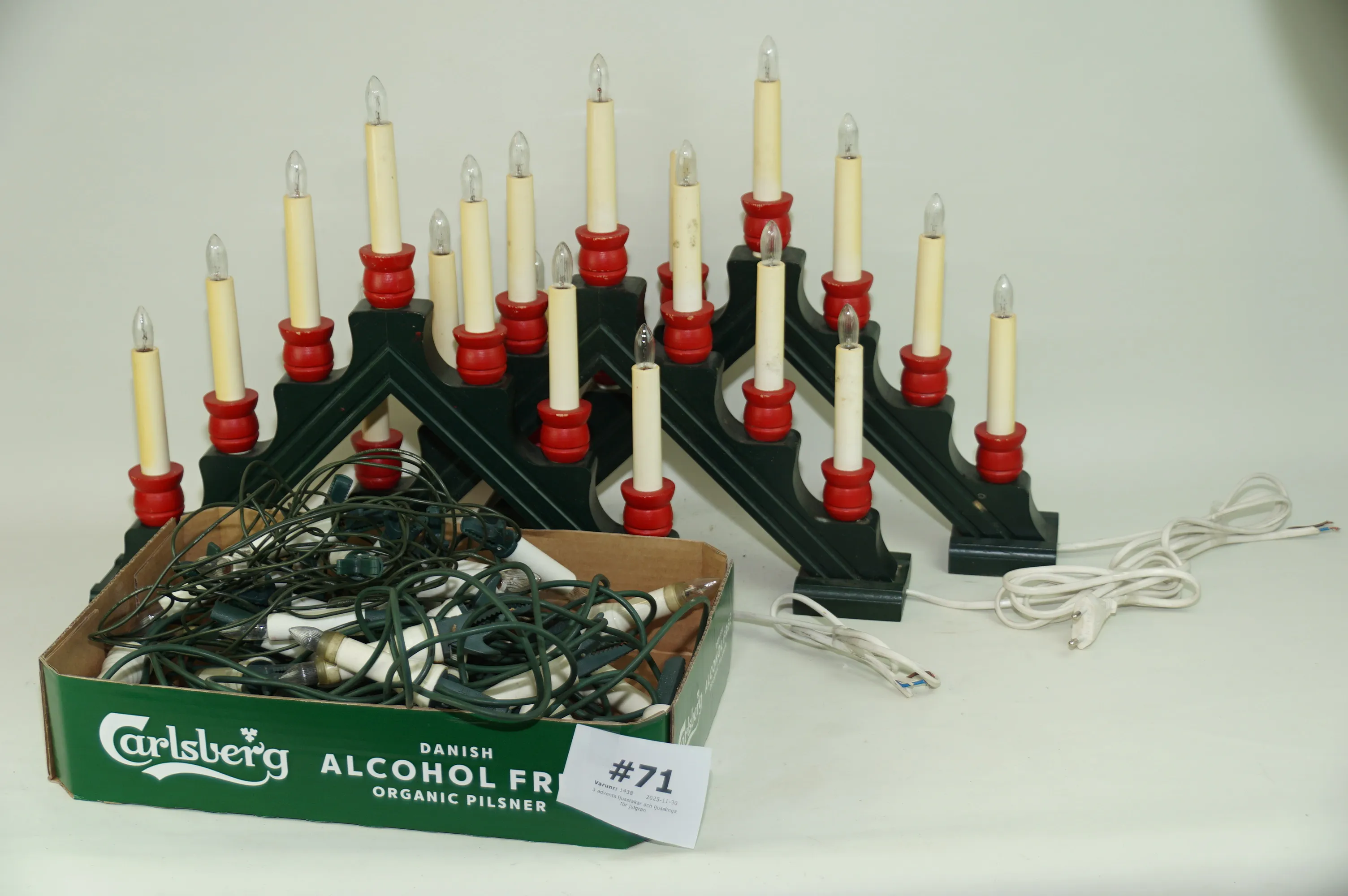 71. 3 advents ljusstakar och ljusslinga för julgran