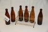 120. 6 gamla ölflaskor med gammalt ställ för 6 flaskor