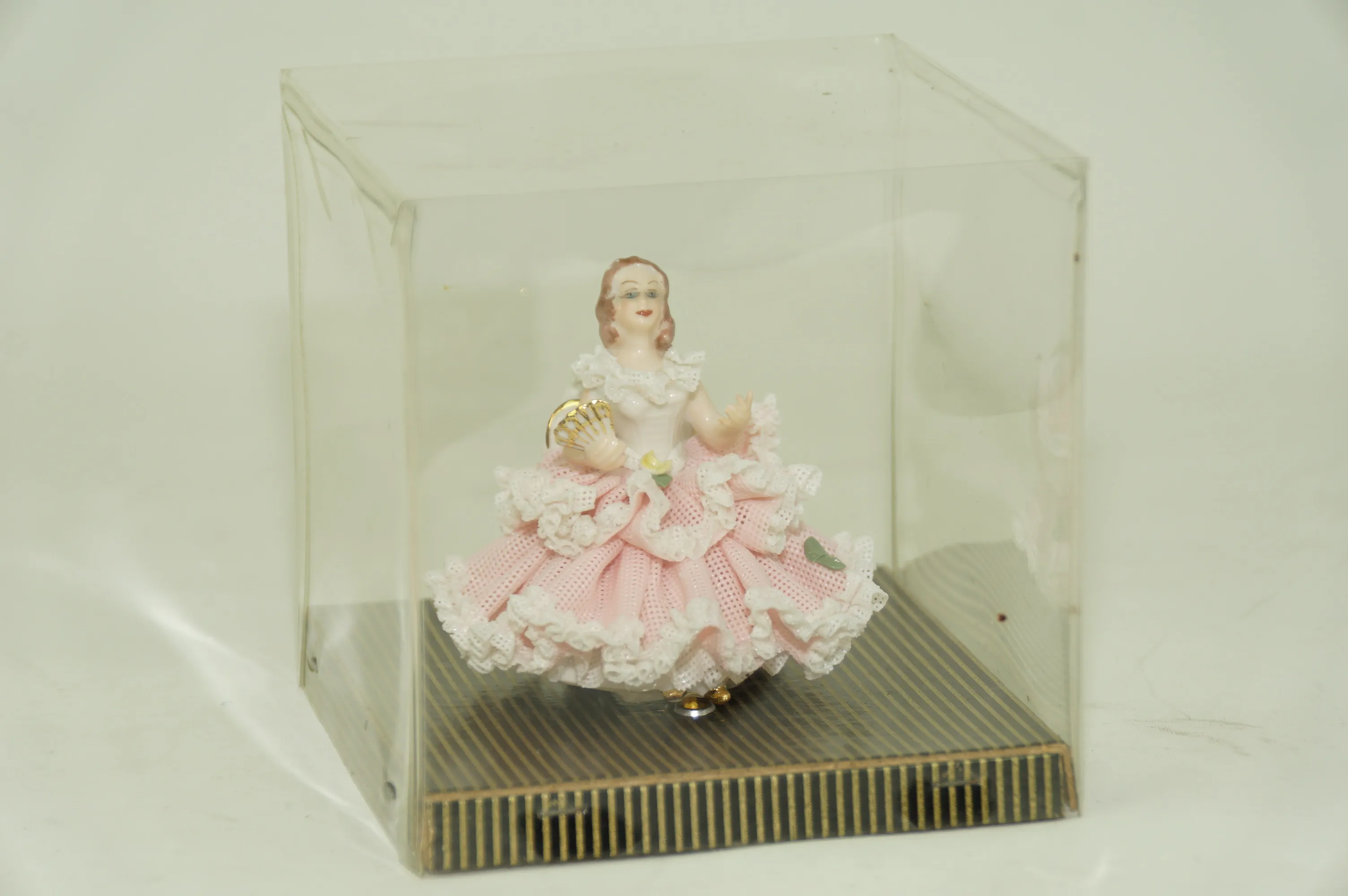 148. Figurin Ballerina i porslin Dressden Tyskland i förpackning
