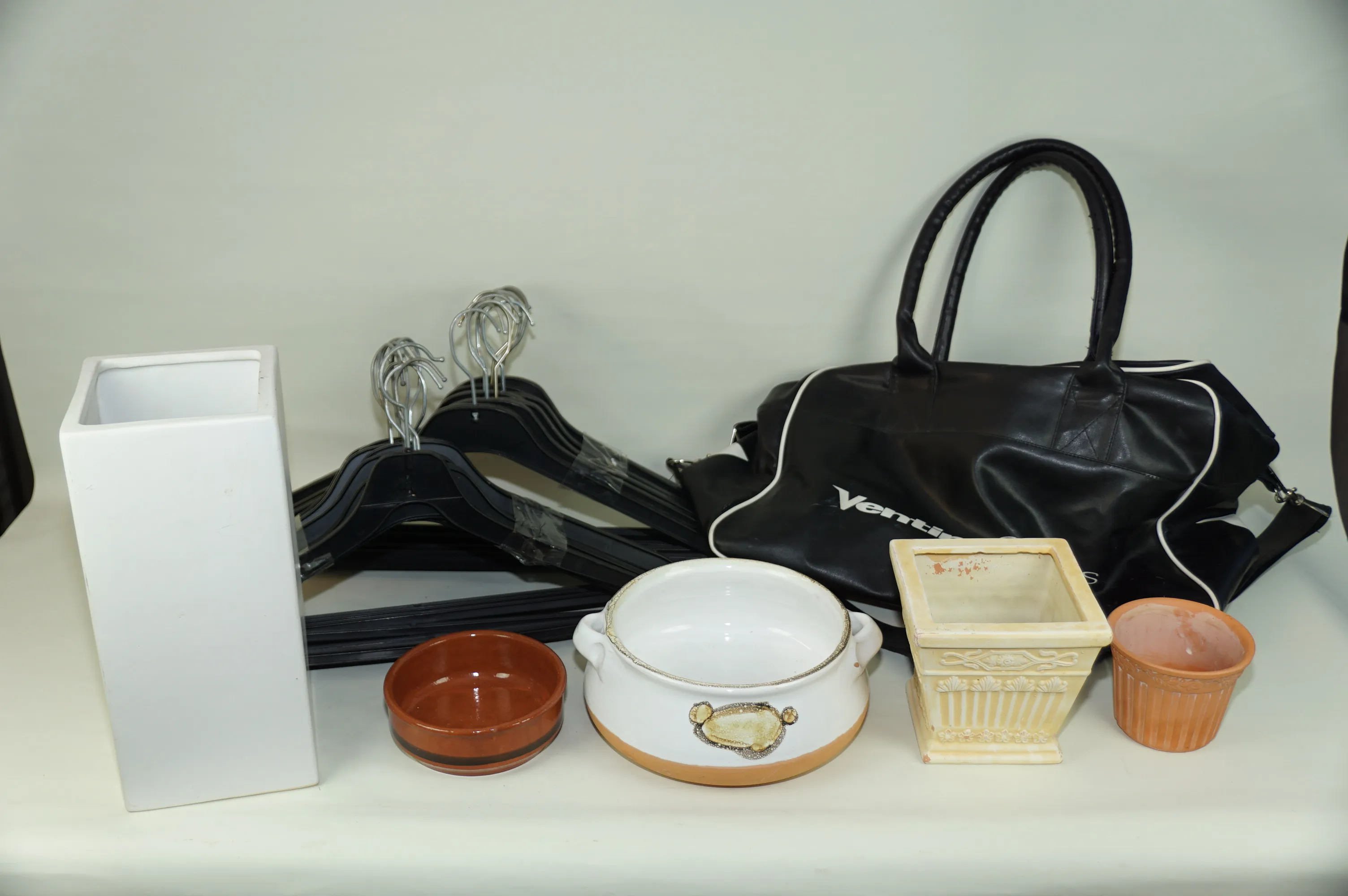 372. Fyndlåda blomkrukor väska mm