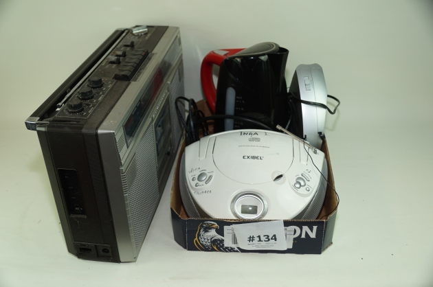 134. Fyndlåda elektronik radio vattenkokare mm