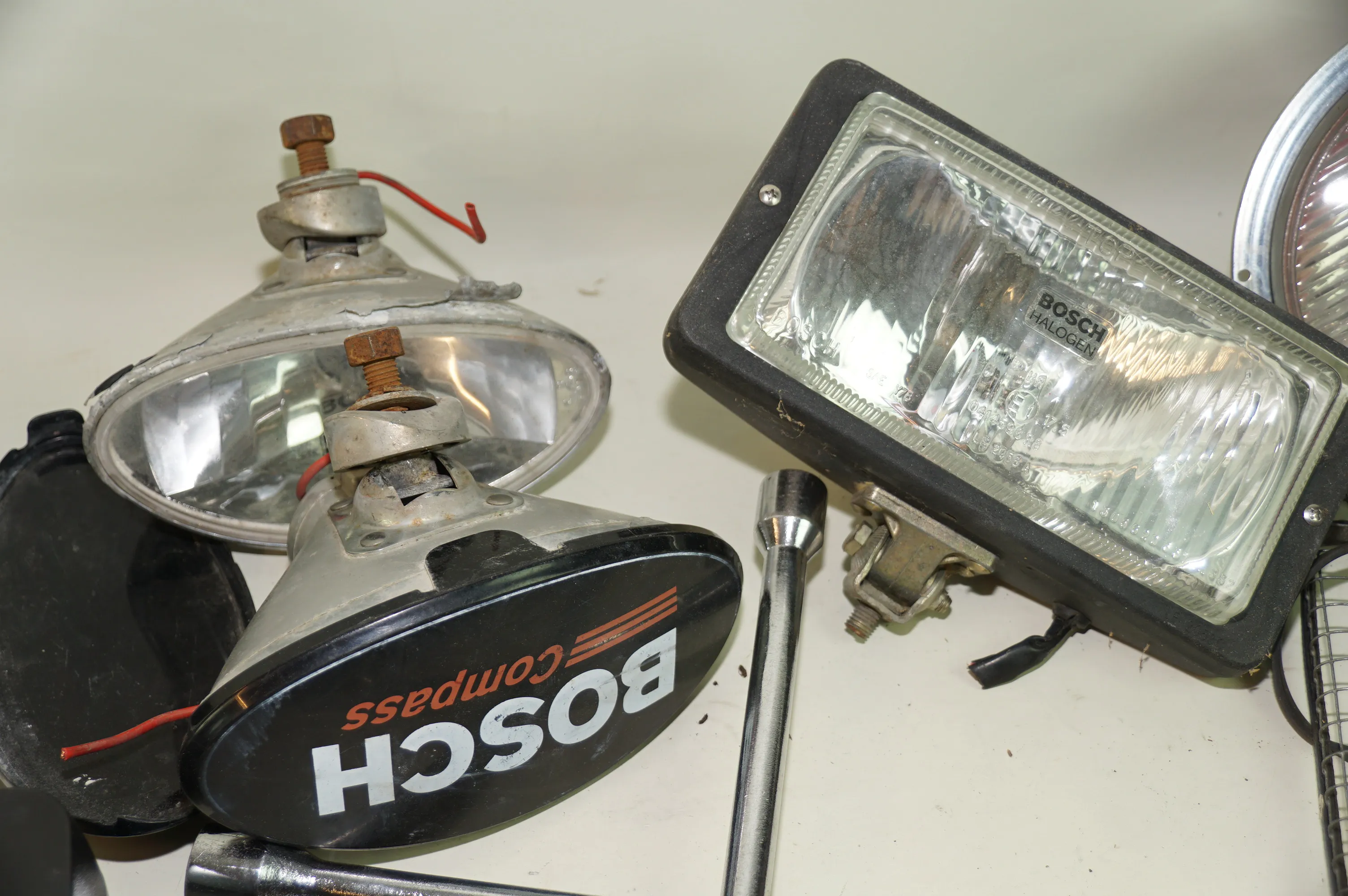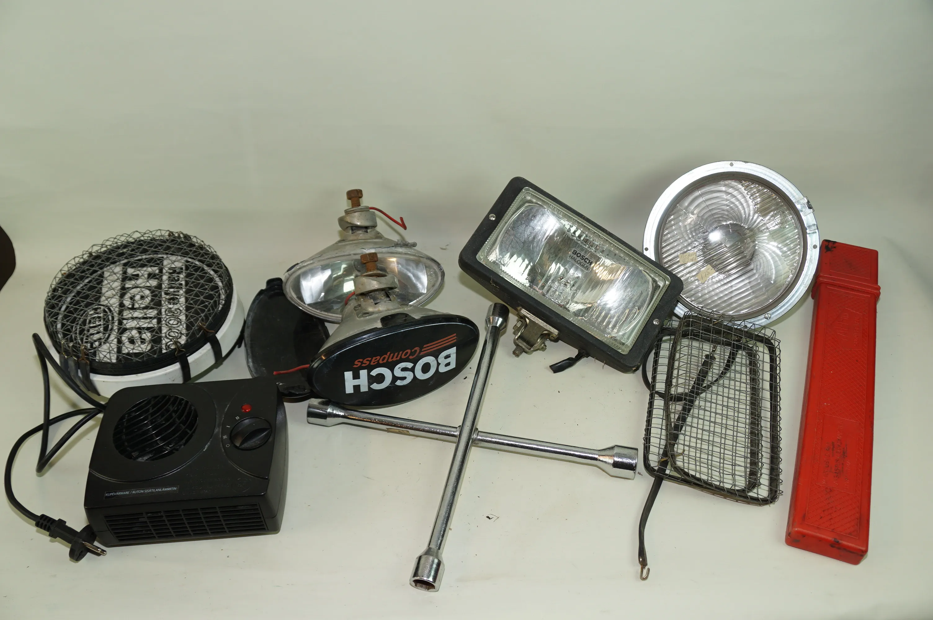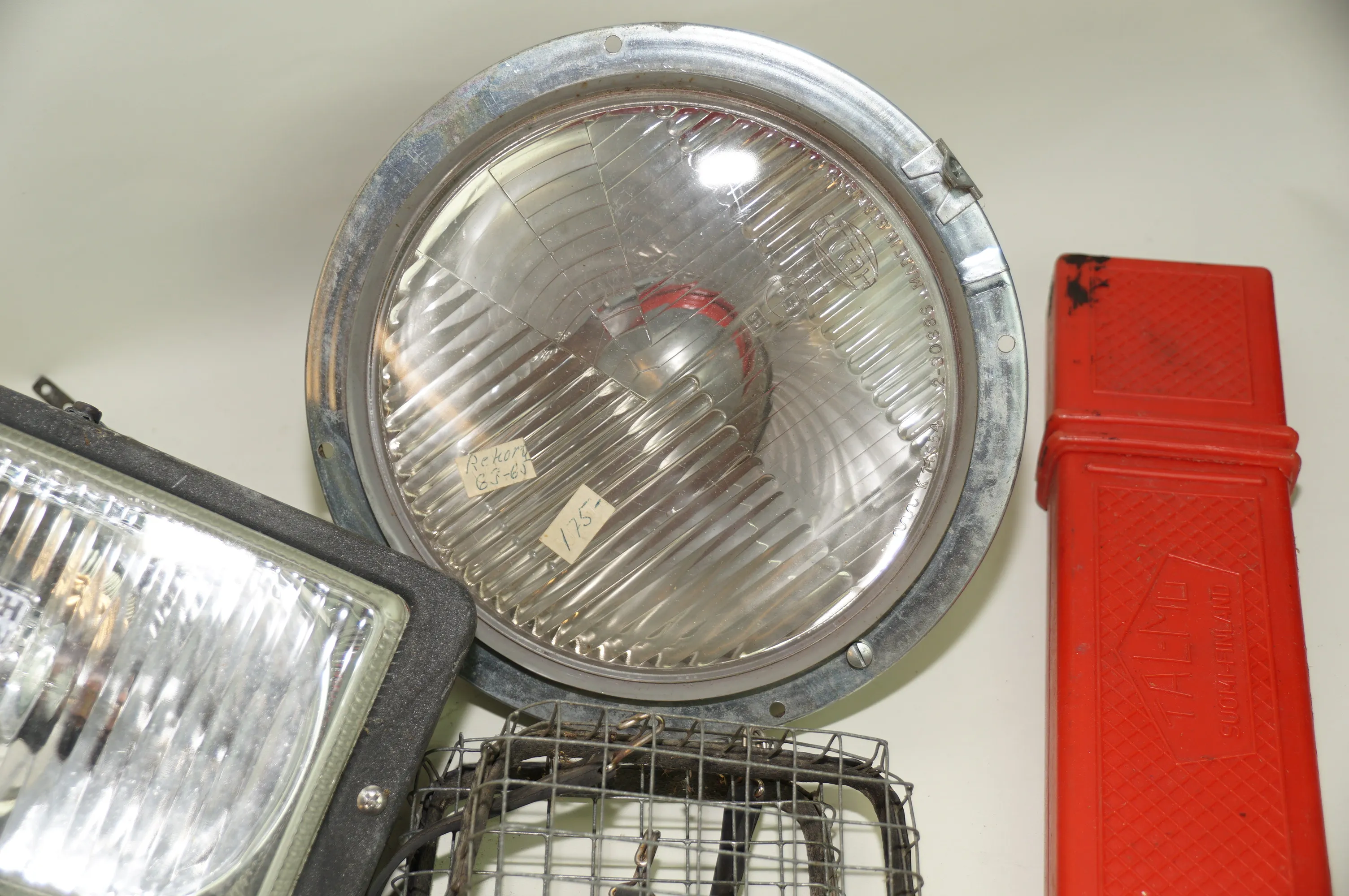 98. Fyndlåda med extraljus lampskydd till bil mm