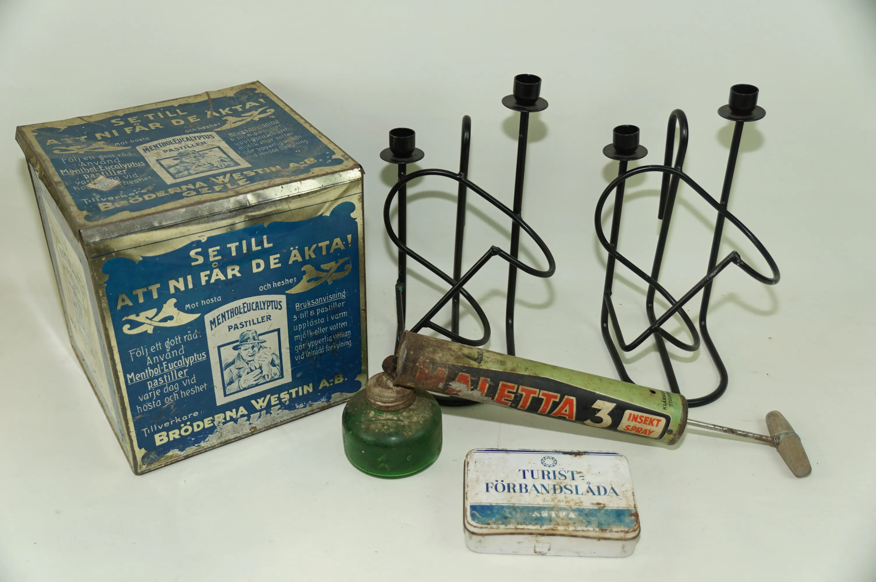 284. Gamla plåtburk ljusstakar för vinflaska