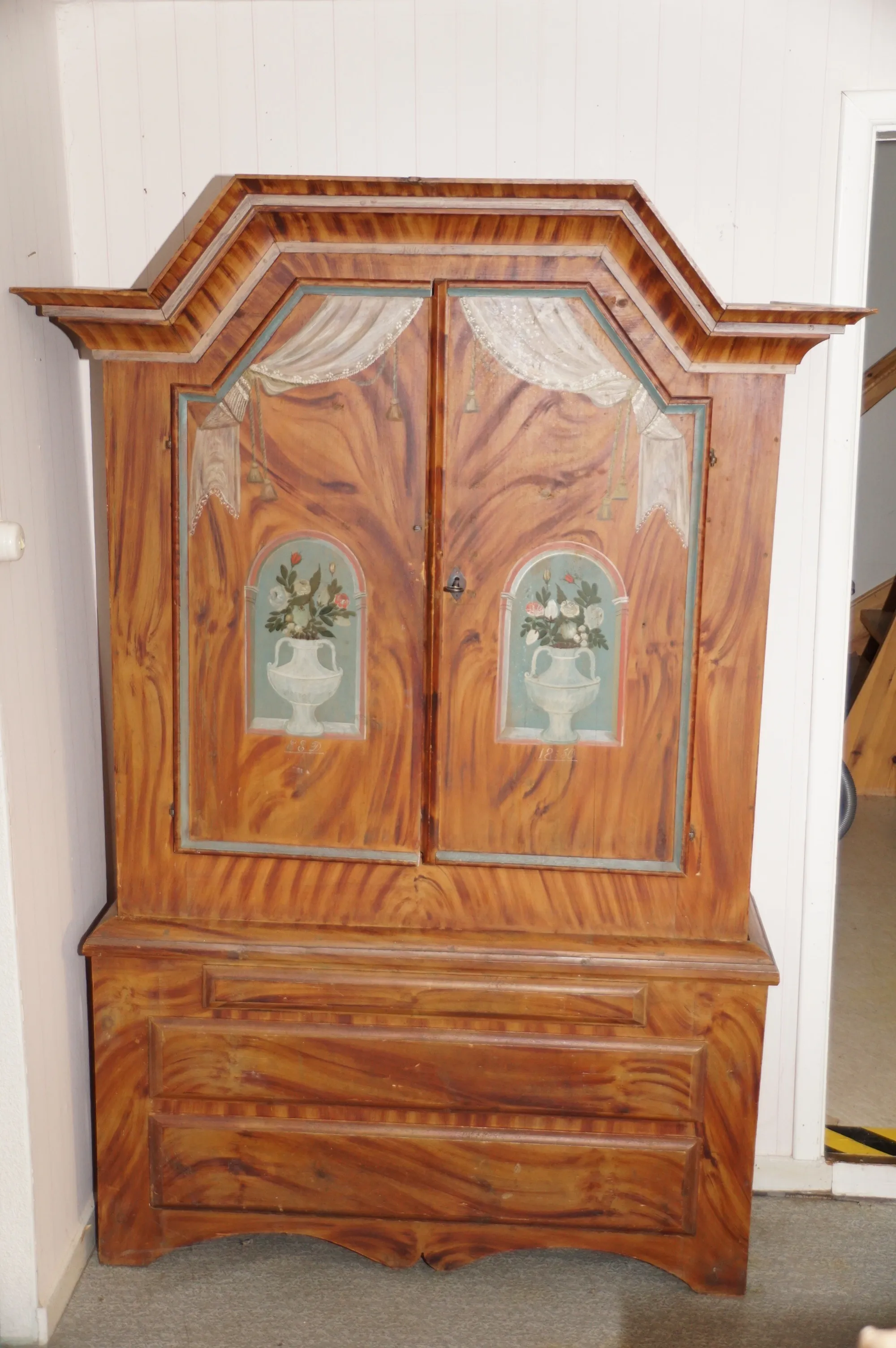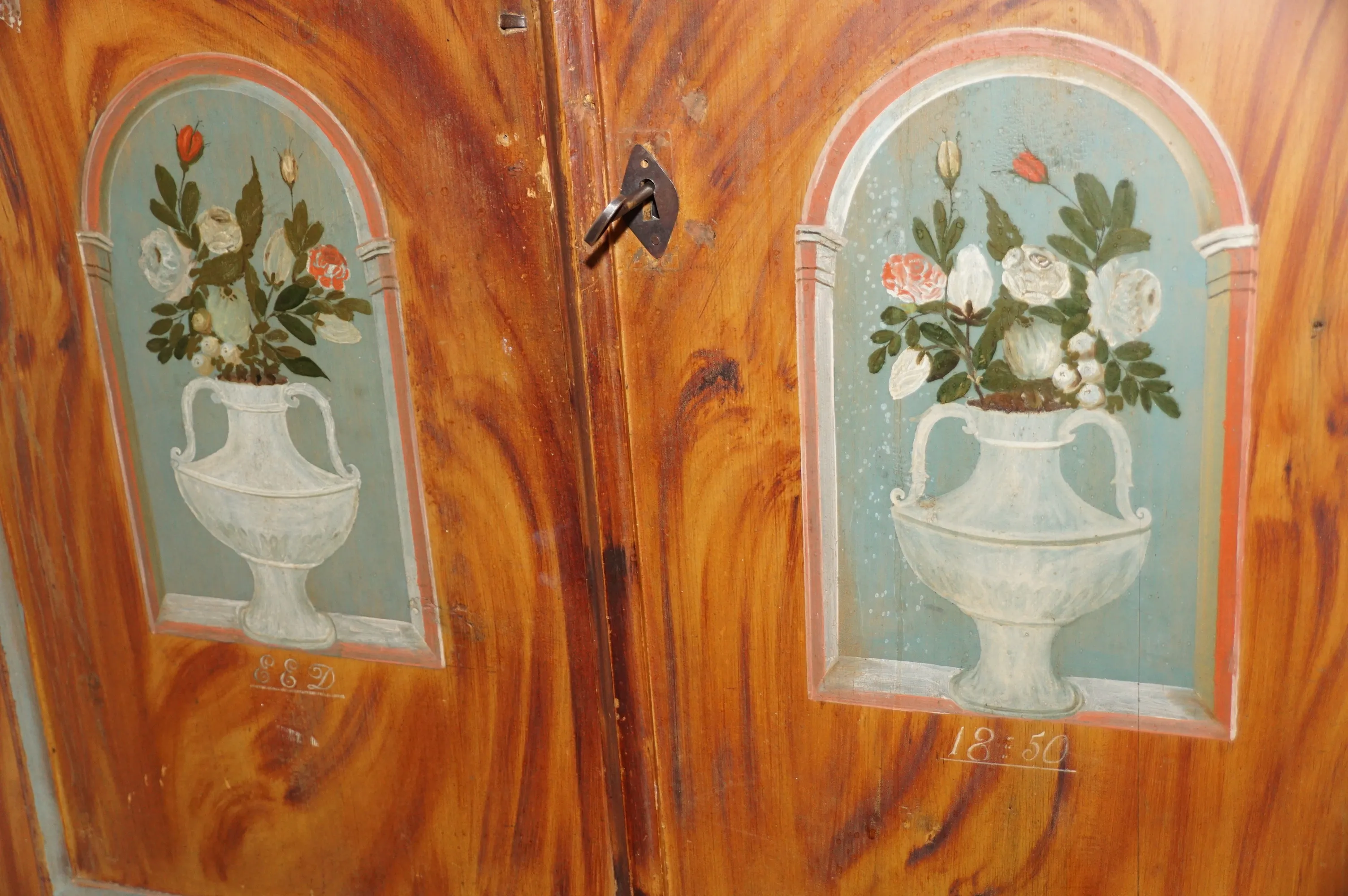 338. Jämtskåp Dubbelskåp. Jämtland. Märkt 1850. Av Göran Sundin. Original målat.