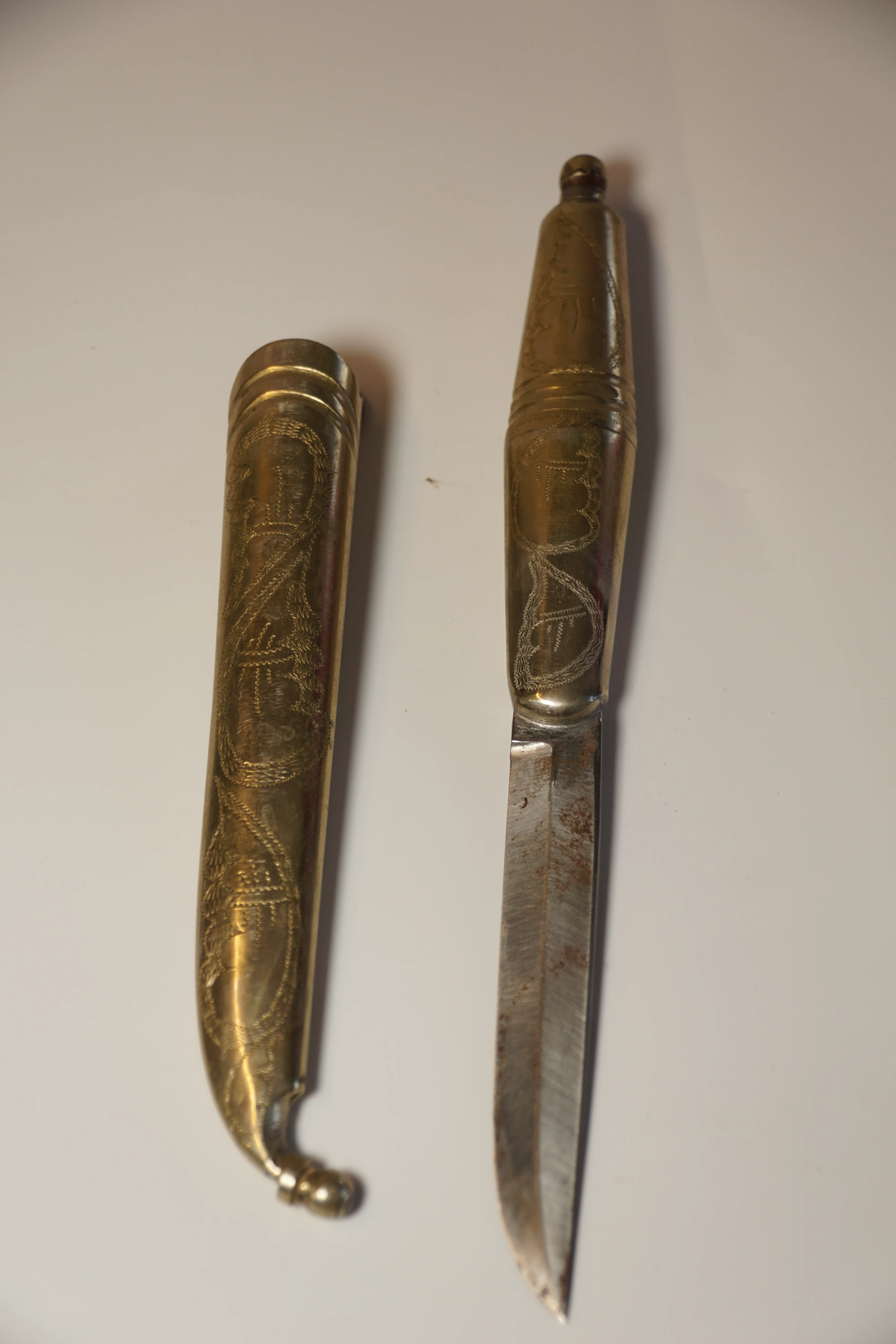 241. Kniv Tjuring Resandekniv Graverad slida och skaft Möjlig nysilver