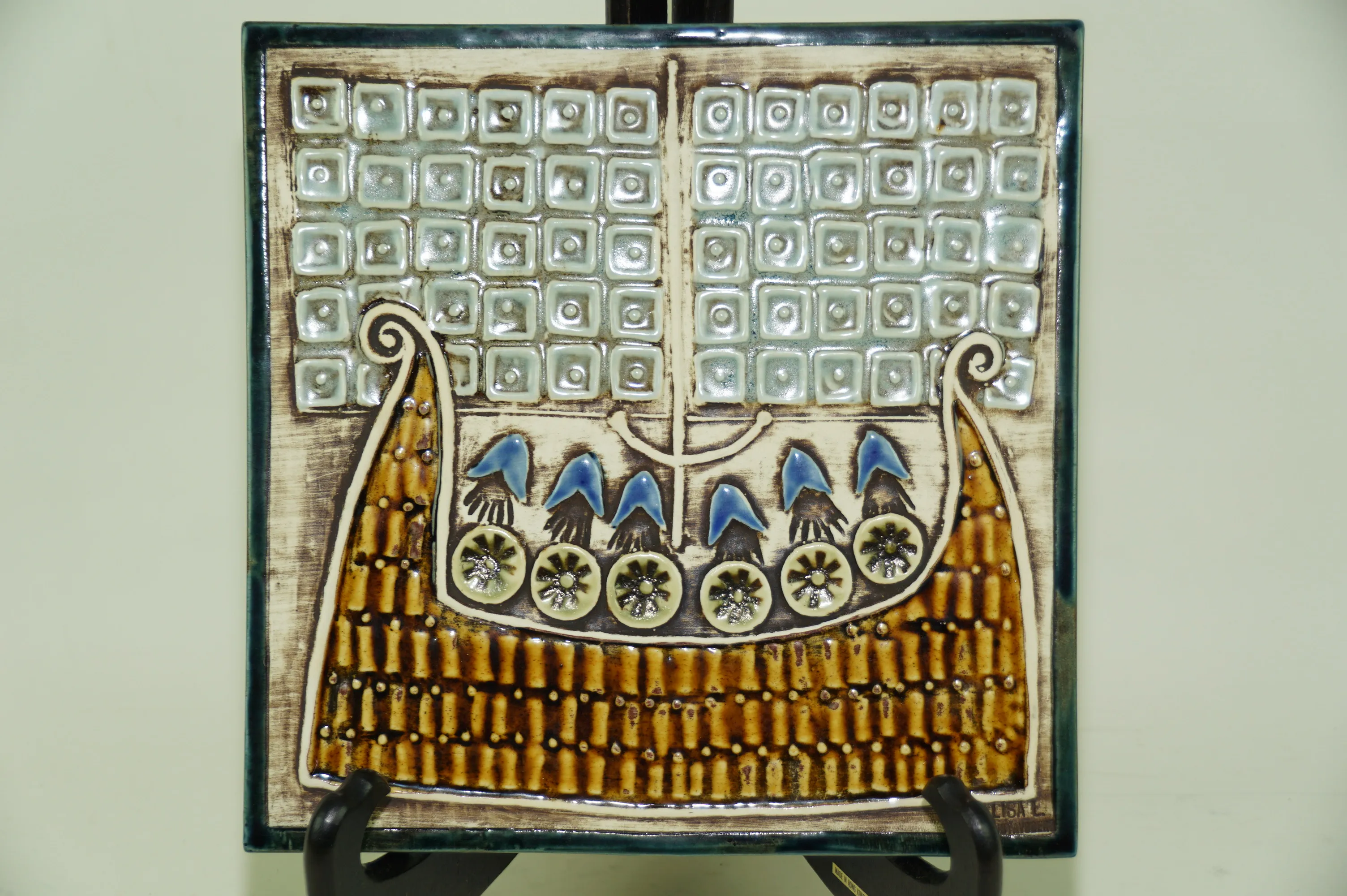5. Lisa Larsson Väggplakett Vikingaskepp Stengods