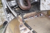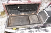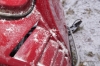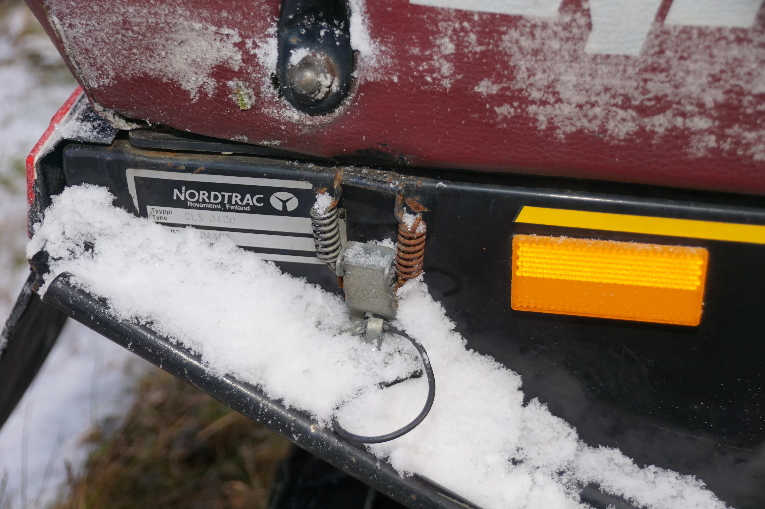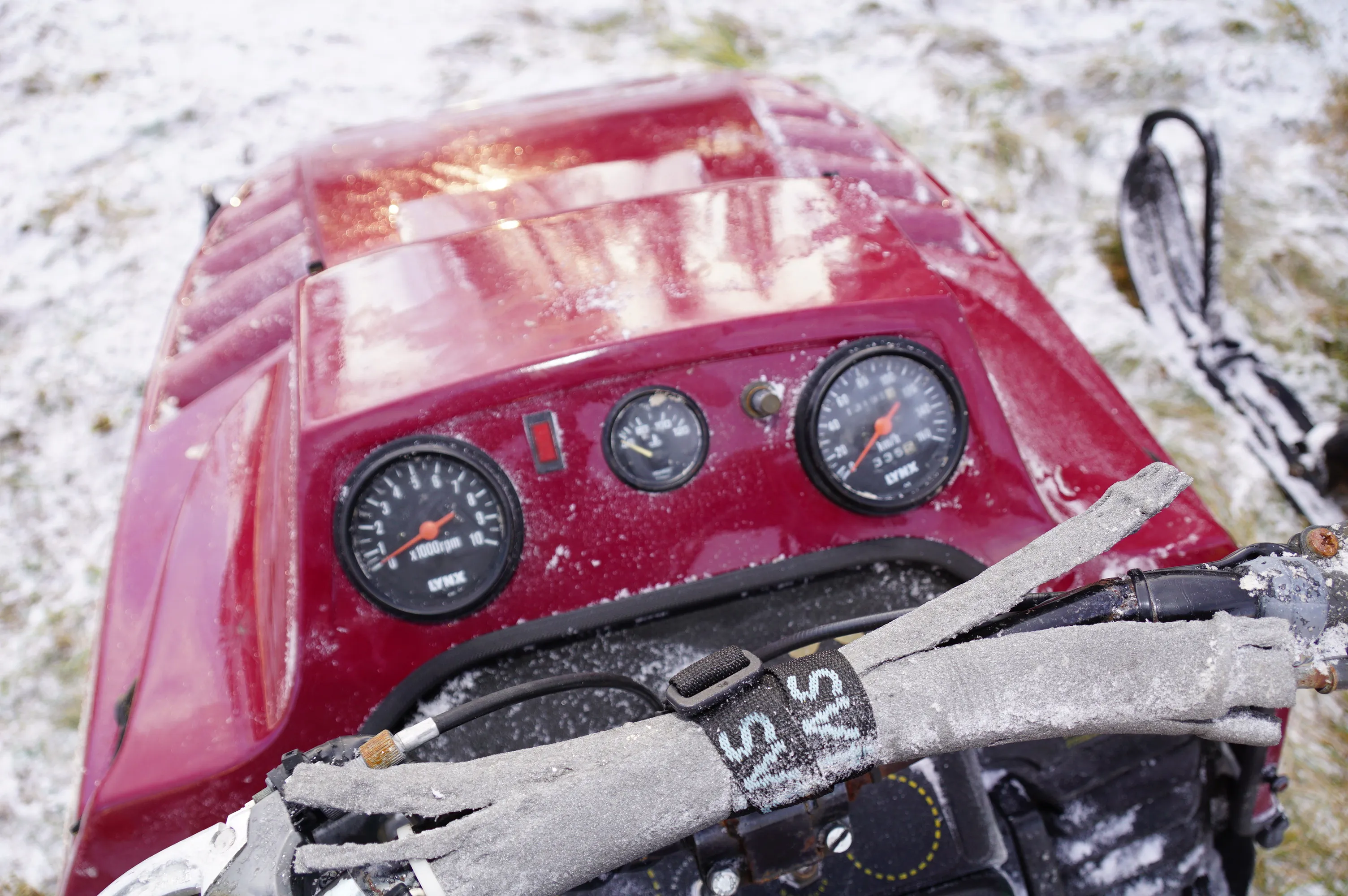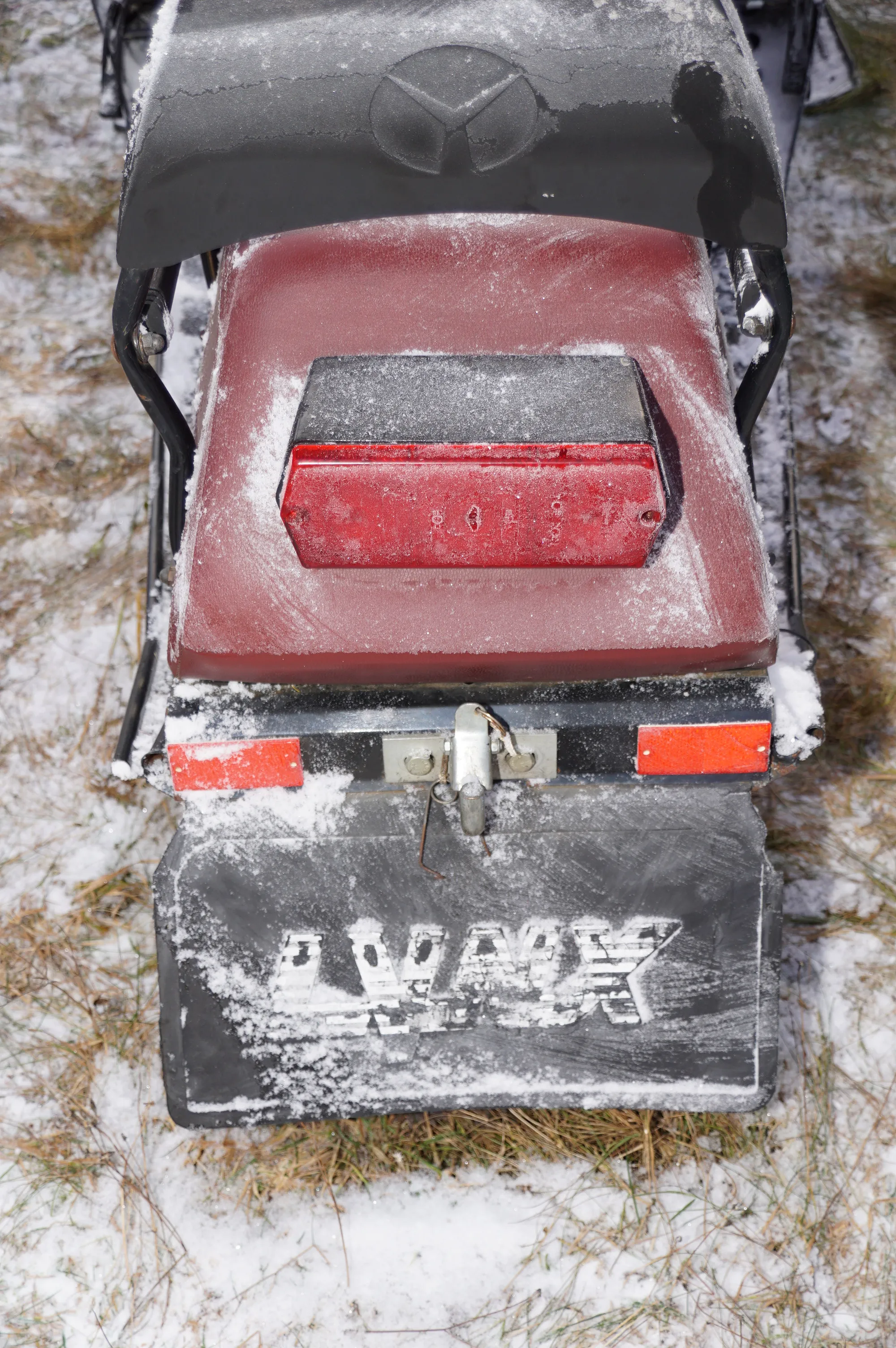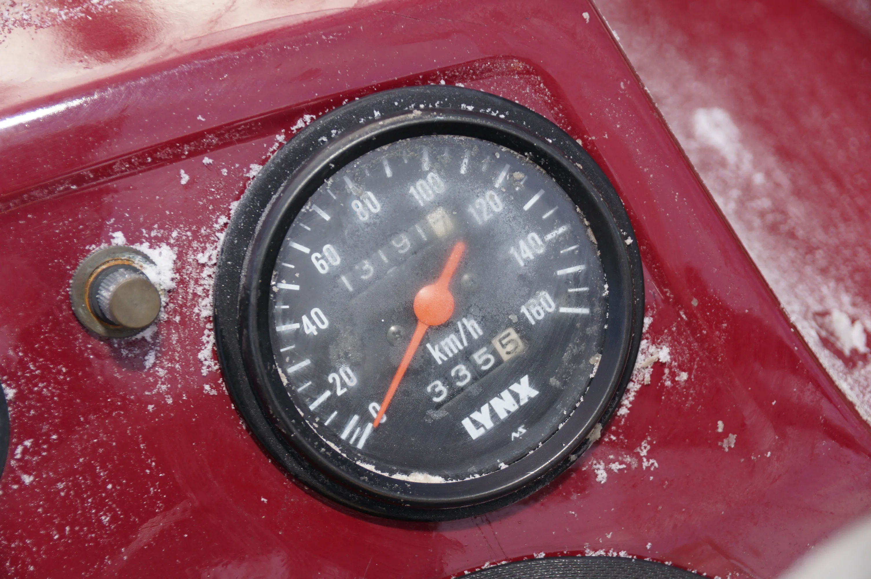 Ena fästet på huven är trasigt, vajerfästet som sitter i huven har lossnat. Rutan saknas. Låsningen till dynan är dålig/borta. Den startar.