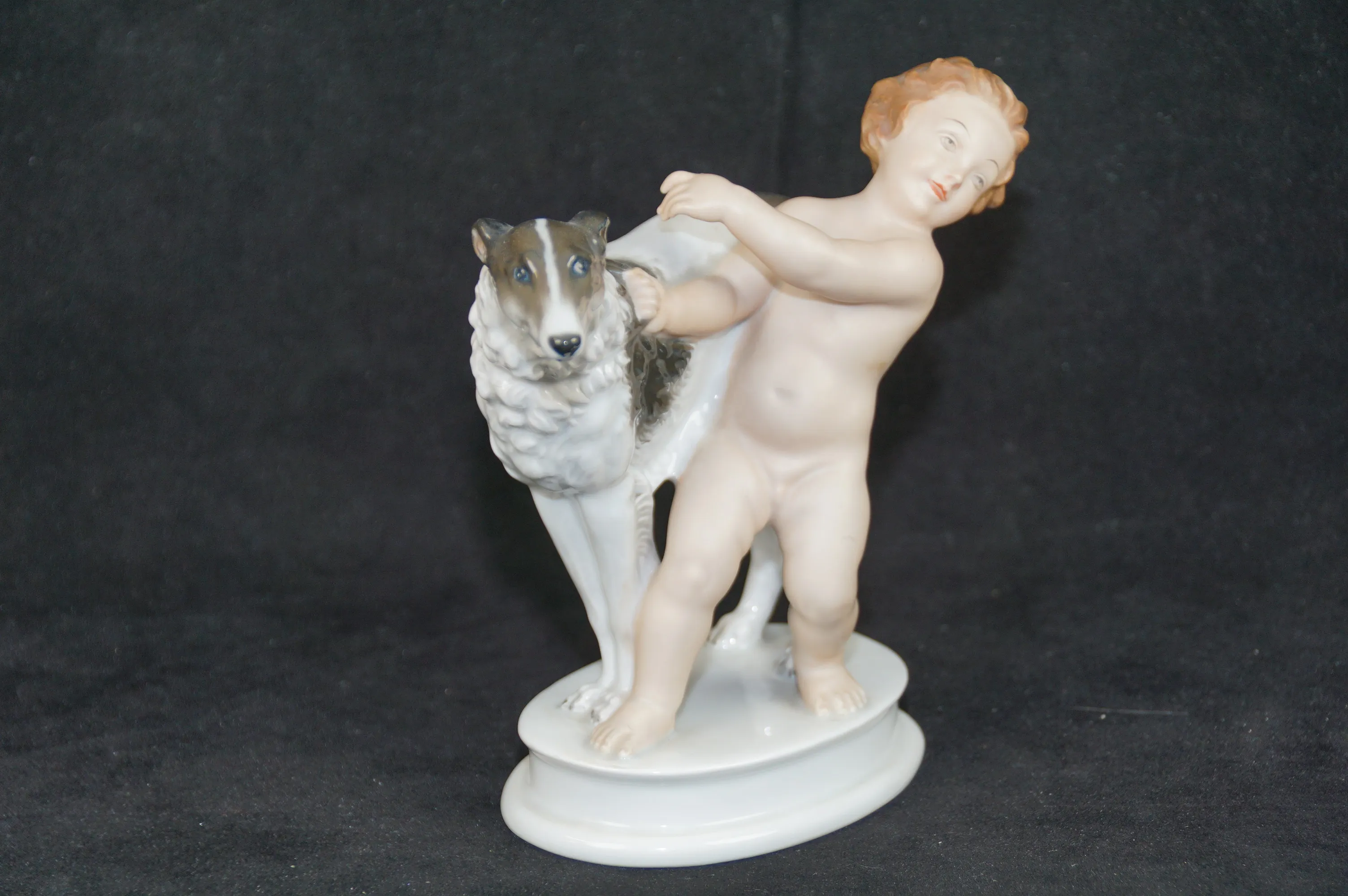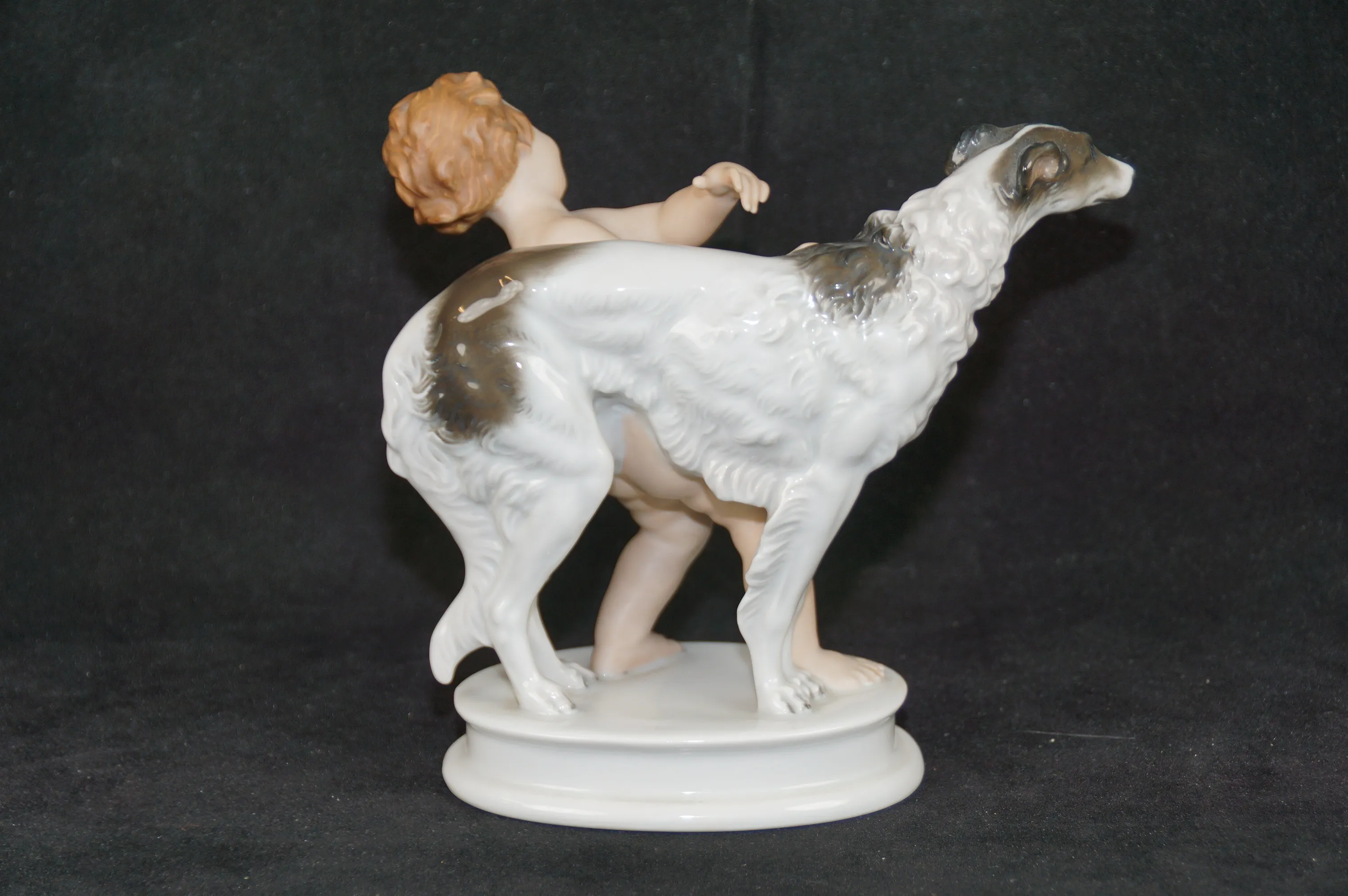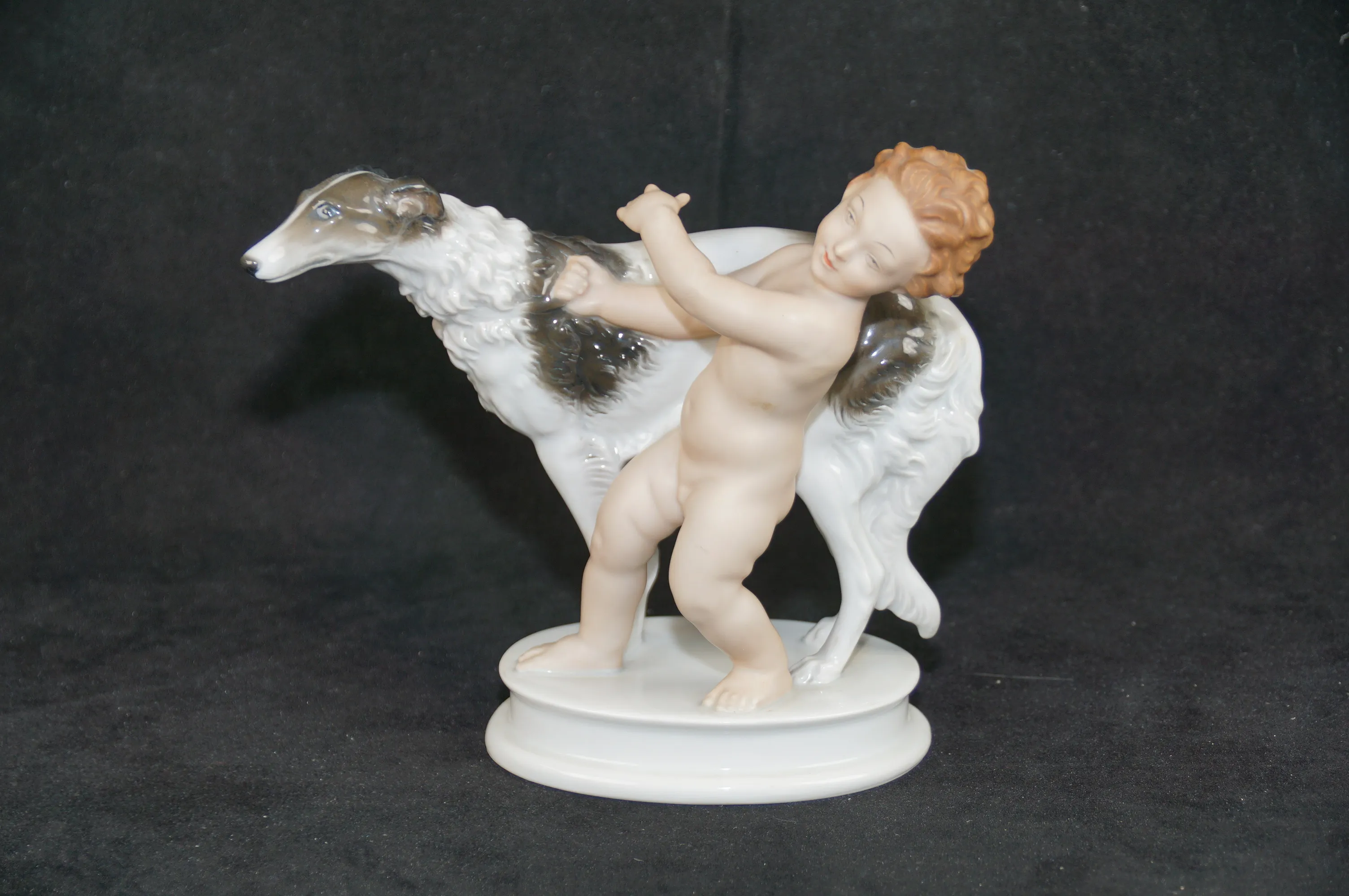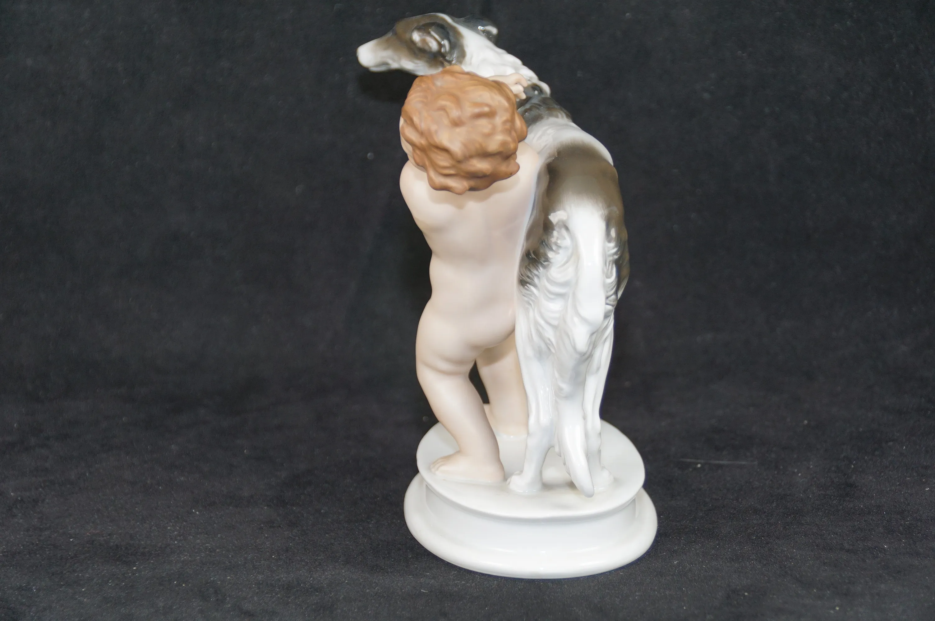 99. Max Hermann Fritz Figurin Pojke med Vinthund Rosenthal Tyskland