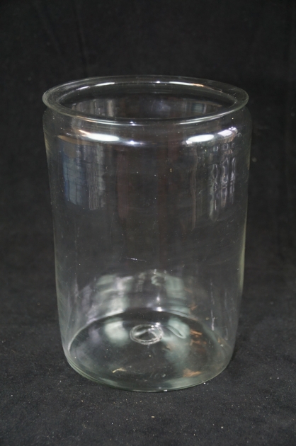116. Munblåst glasburk med omvikt kant för förvaring. 20,5 cm 1800-tal