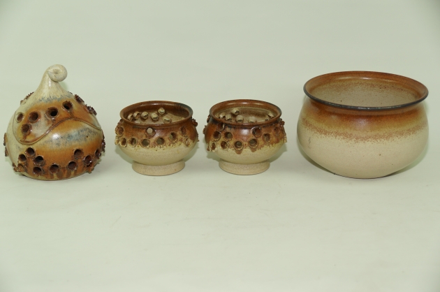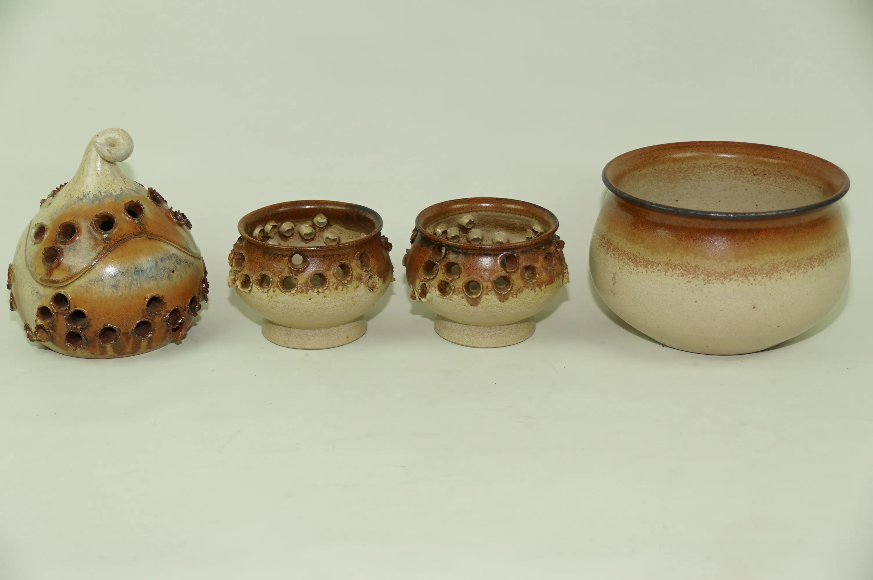 390. Parti med Keramik 3 ljuslyktor och en karott