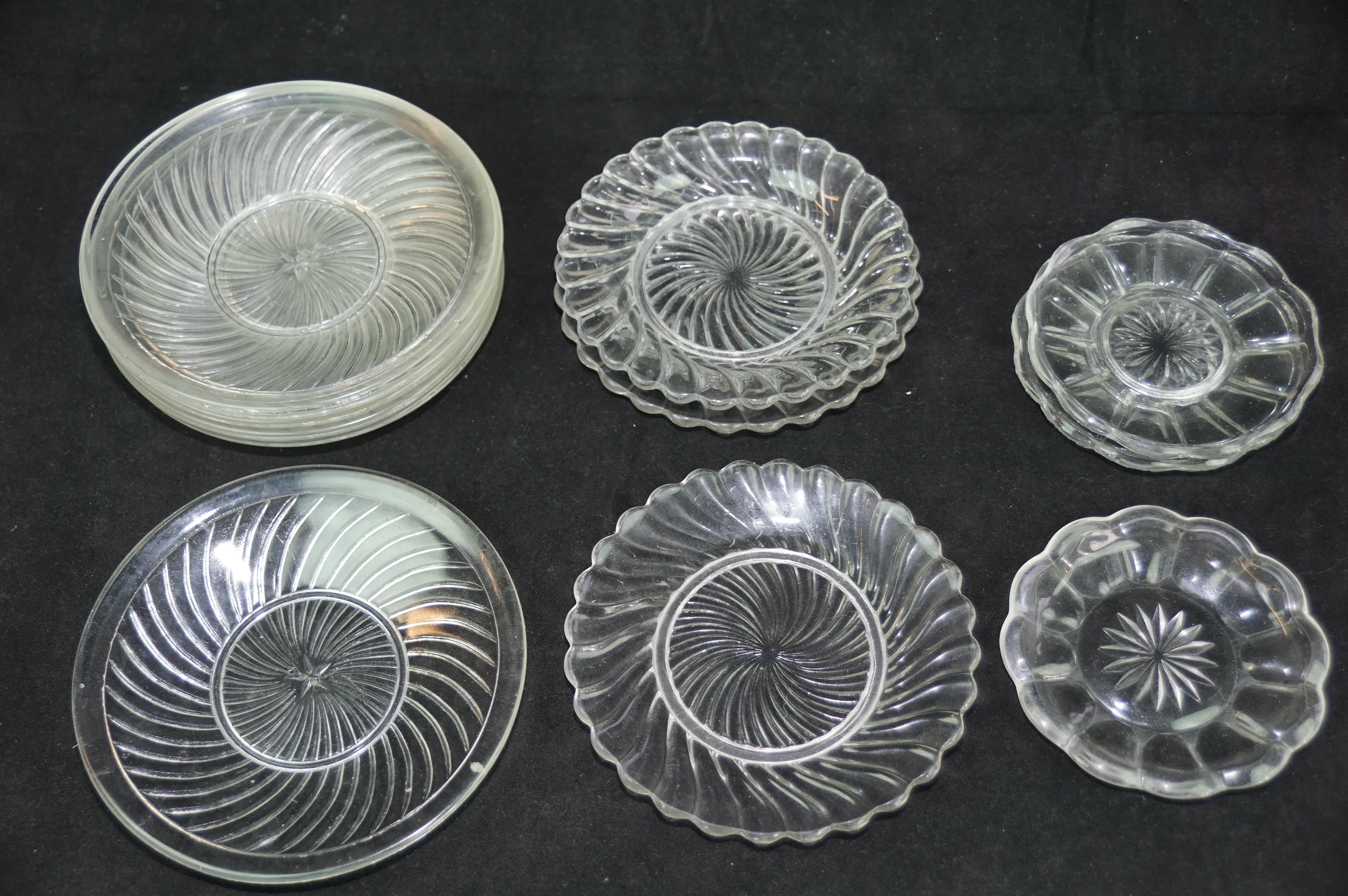 7. Pressglas assietter gräddkanna sockerskål saltkar
