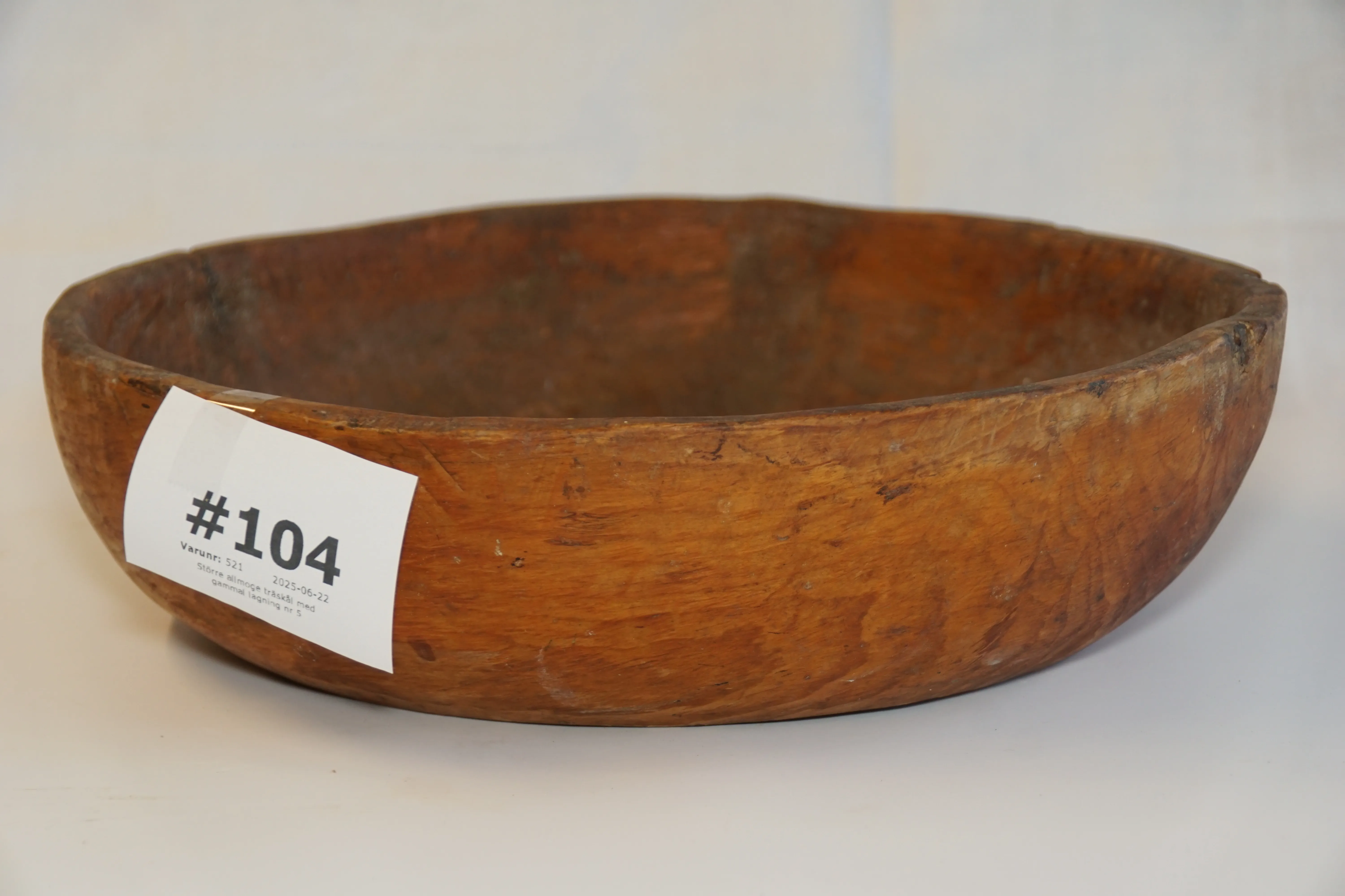 104. Större allmoge träskål med gammal lagning nr 5