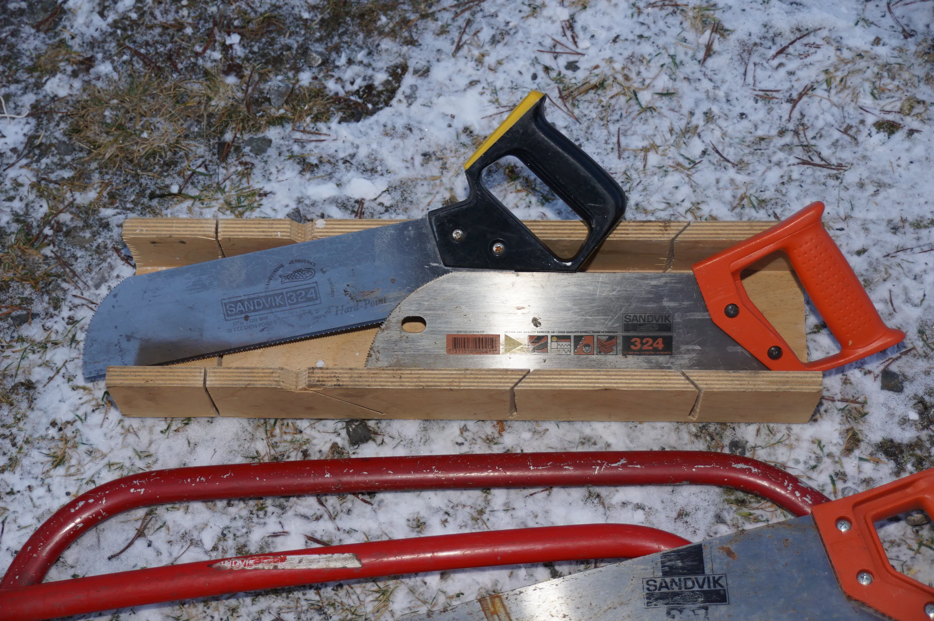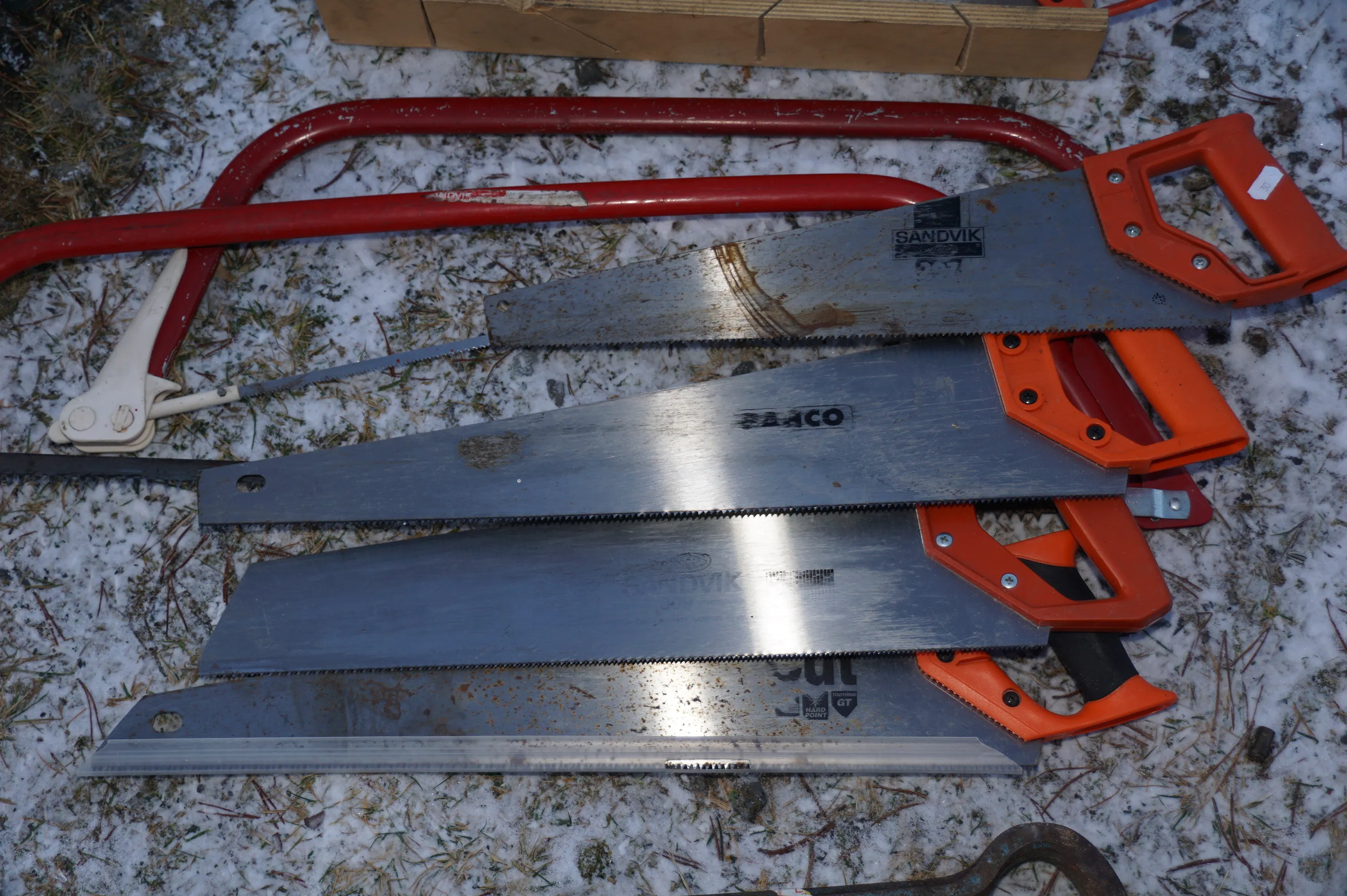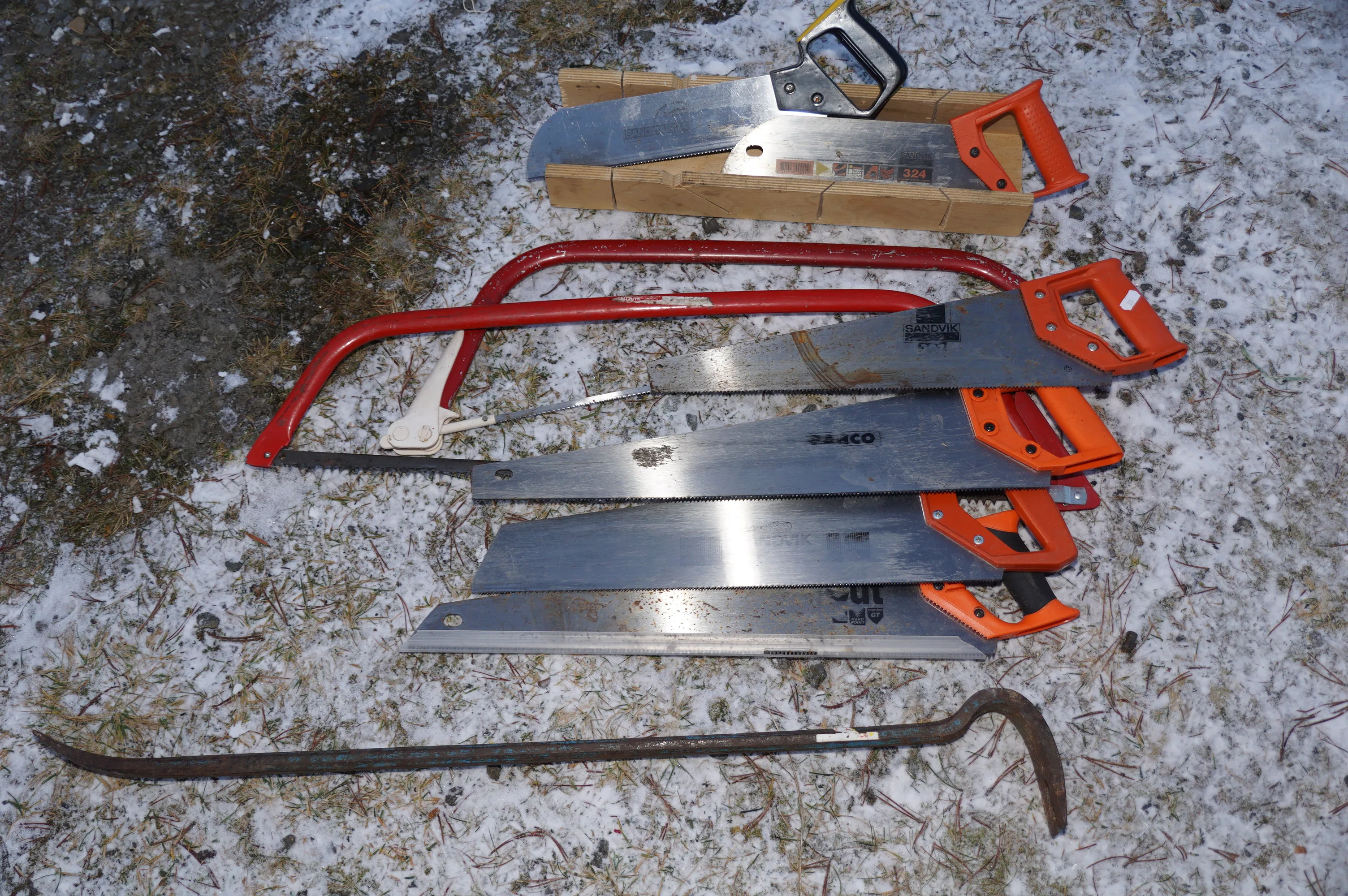 69. Större parti med sågar bågsåg svans girsågar och kofot