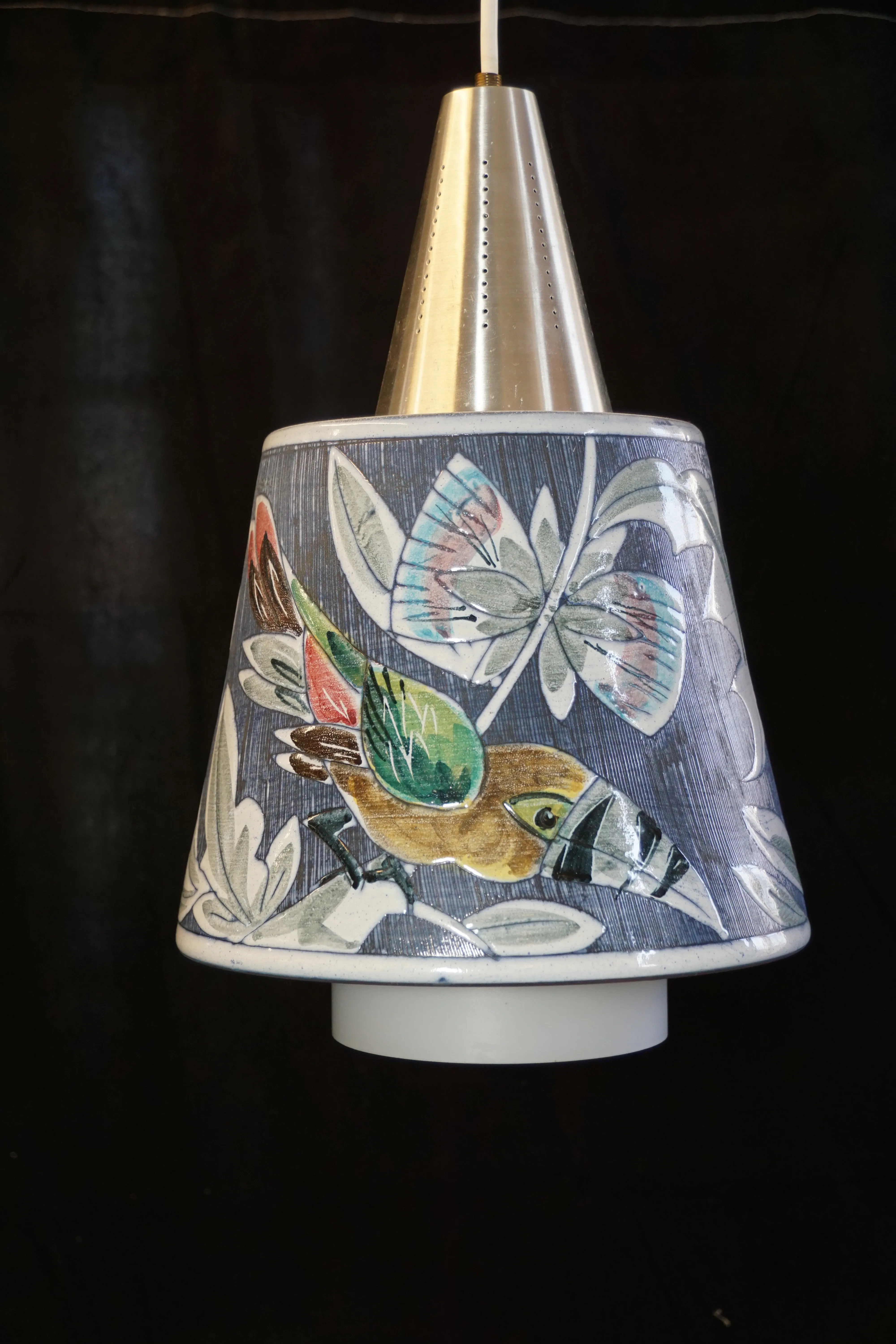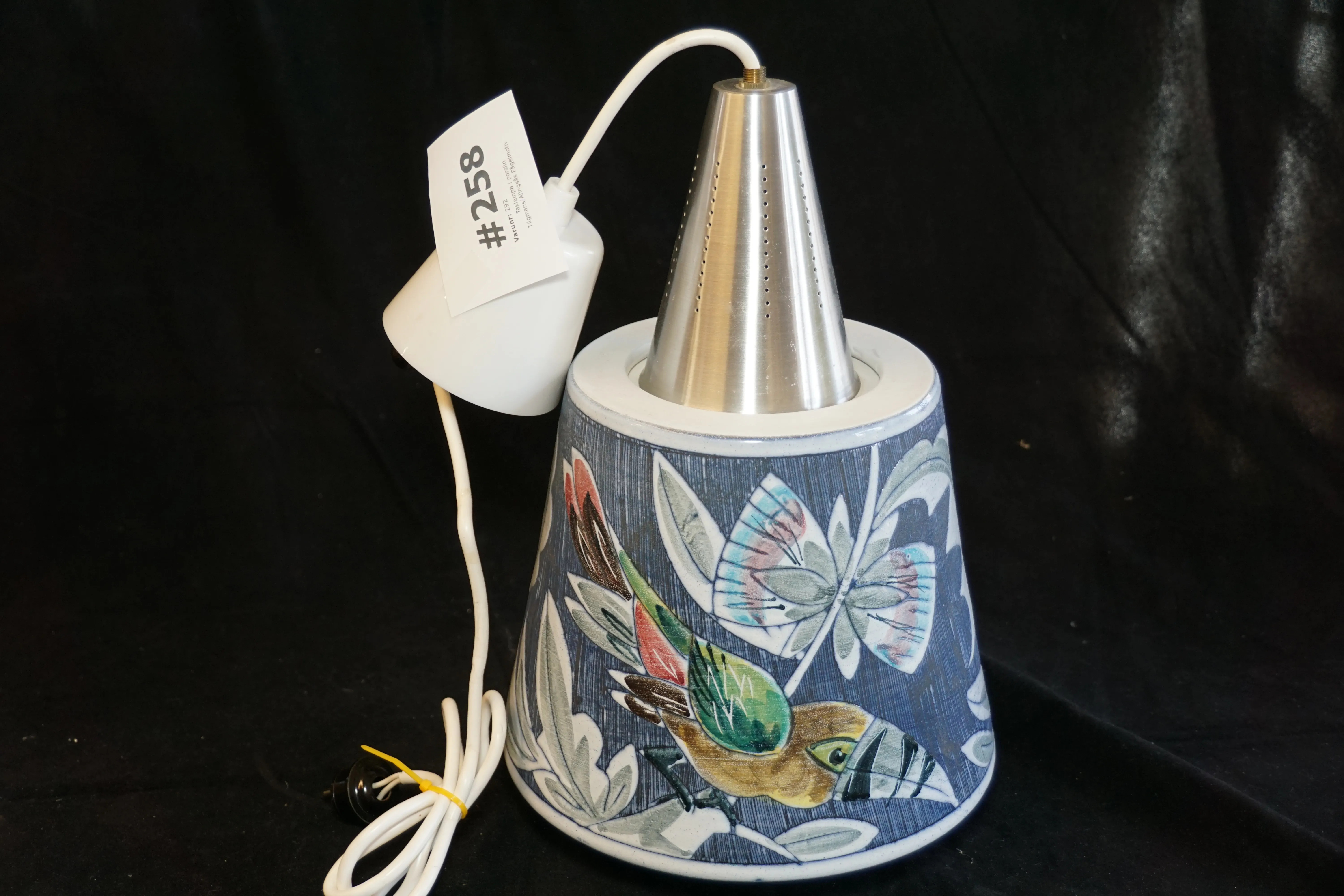 258. Taklampa i porslin Tilgmans/Alingsås Fågelmotiv