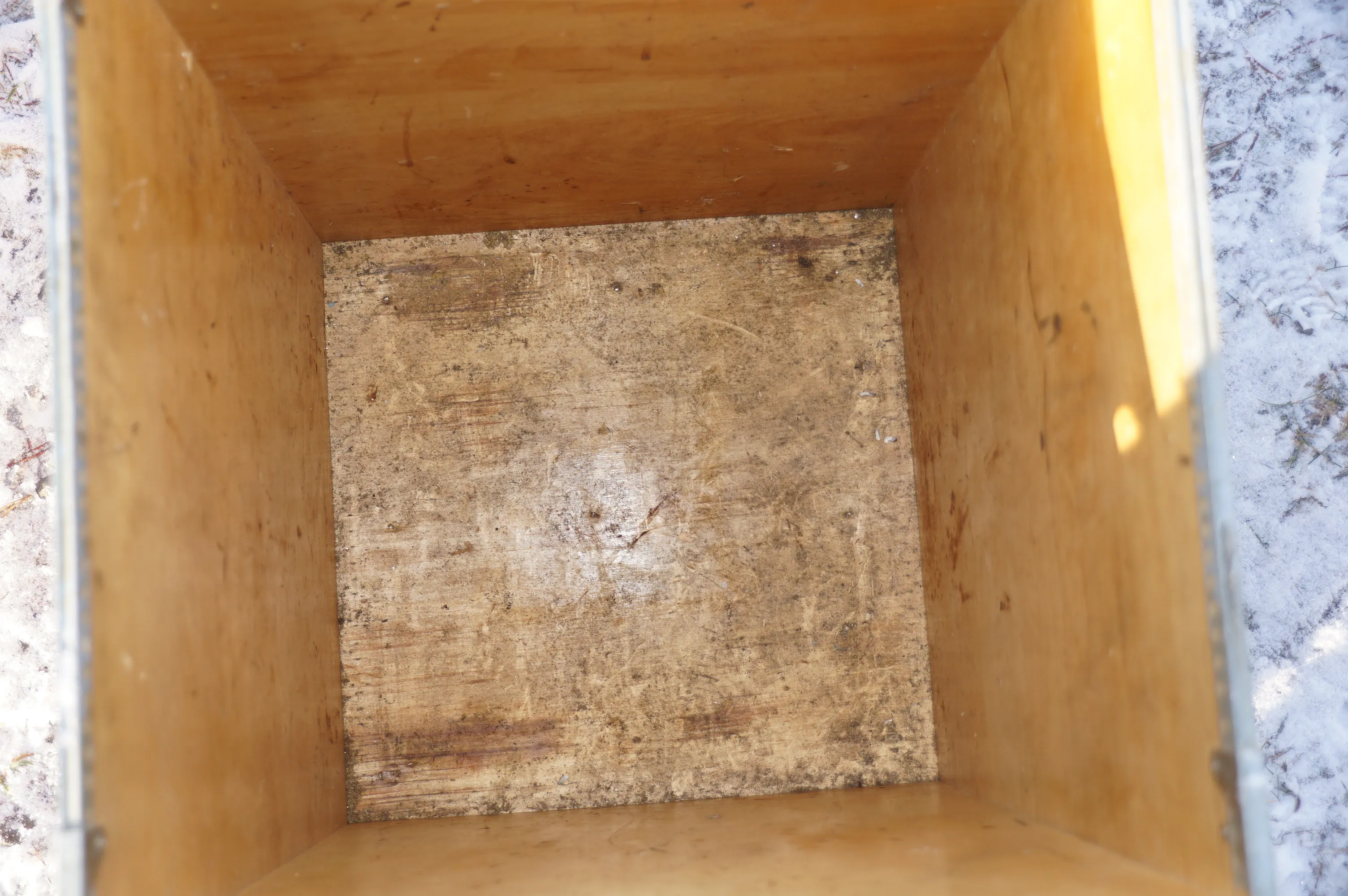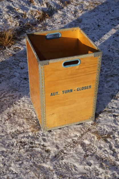53. Trälåda sopkorg? förvaringsbox med metallbeslag
