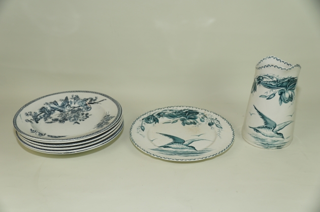 68. Wexiö 6 djuptallrikar 1 tallrik & en kanna Tärna Göteborg Flintgods Början 1900